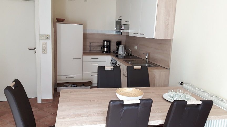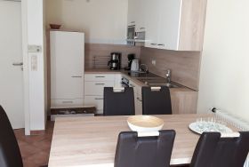 Eine großzügige Wohnküche mit Senseoautomat, Mikrowelle, Backofen, Ceranfeld, Kühl-Gefrierkombi u.v.m., Wohn- und Essbereich mit Flachbild TV, Blu-Ray Player, Hifi Anlage, modernen Filmen, modernen Kinderspielen und vielen Büchern findet man ebenso im Erdgeschoss wie einen Abstellraum, eine kleine Toilette und ein Schlafzimmer mit Einzelbett und Schreibtisch und Fliegengitter.