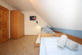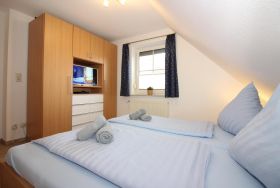 Schlafzimmer 2 mit zwei Einzelbetten, eins davon ein Tandembett, 24 LCD-TV