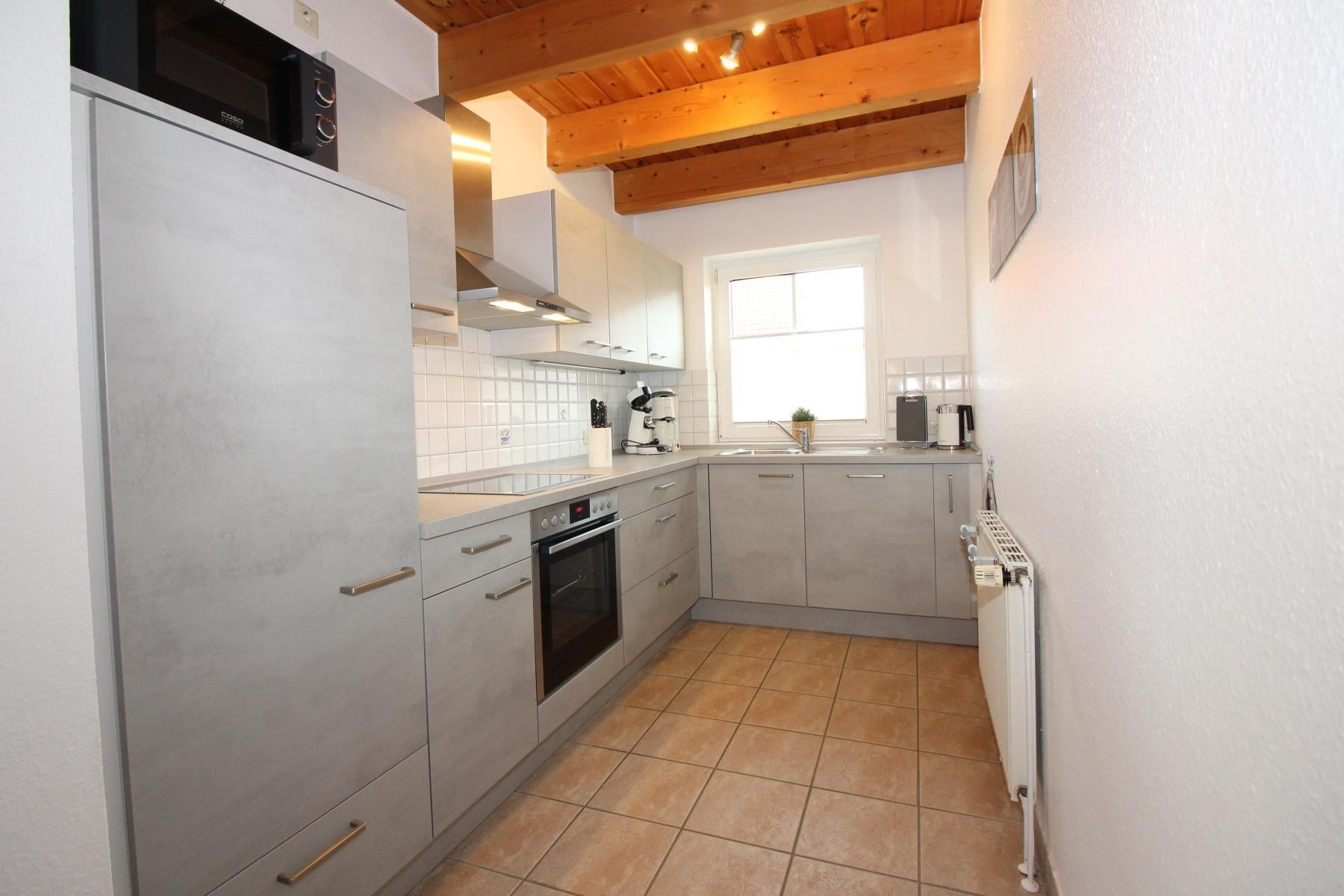 Hier befindet sich der gemütlich eingerichtete Wohnbereich mit separatem Essplatz (inkl. Kinderhochstuhl) und angrenzender offenen Küche, deren umfangreiche Ausstattung keine Wünsche offen lässt (Kühlschrank mit Tiefkühlfach, Backofen, Ceranfeld, Spülmaschine, Mikrowelle, Kaffee + Senseo-Maschine, Eier-/Wasserkocher, Toaster, Mixer). Geschirr und Gläser sind ausreichend vorhanden.