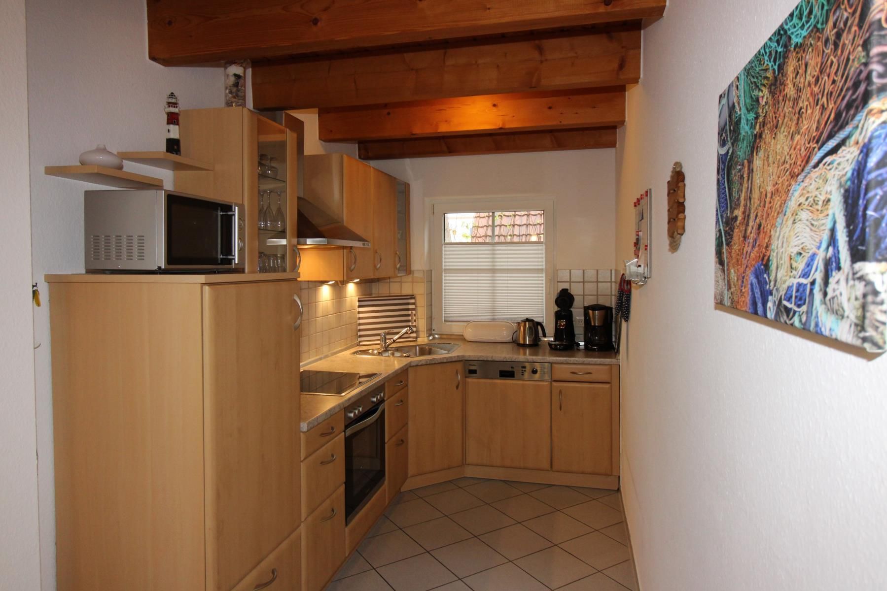 Im Erdgeschoss befindet sich eine offene Küche mit allen erforderlichen Elektrogeräten.