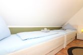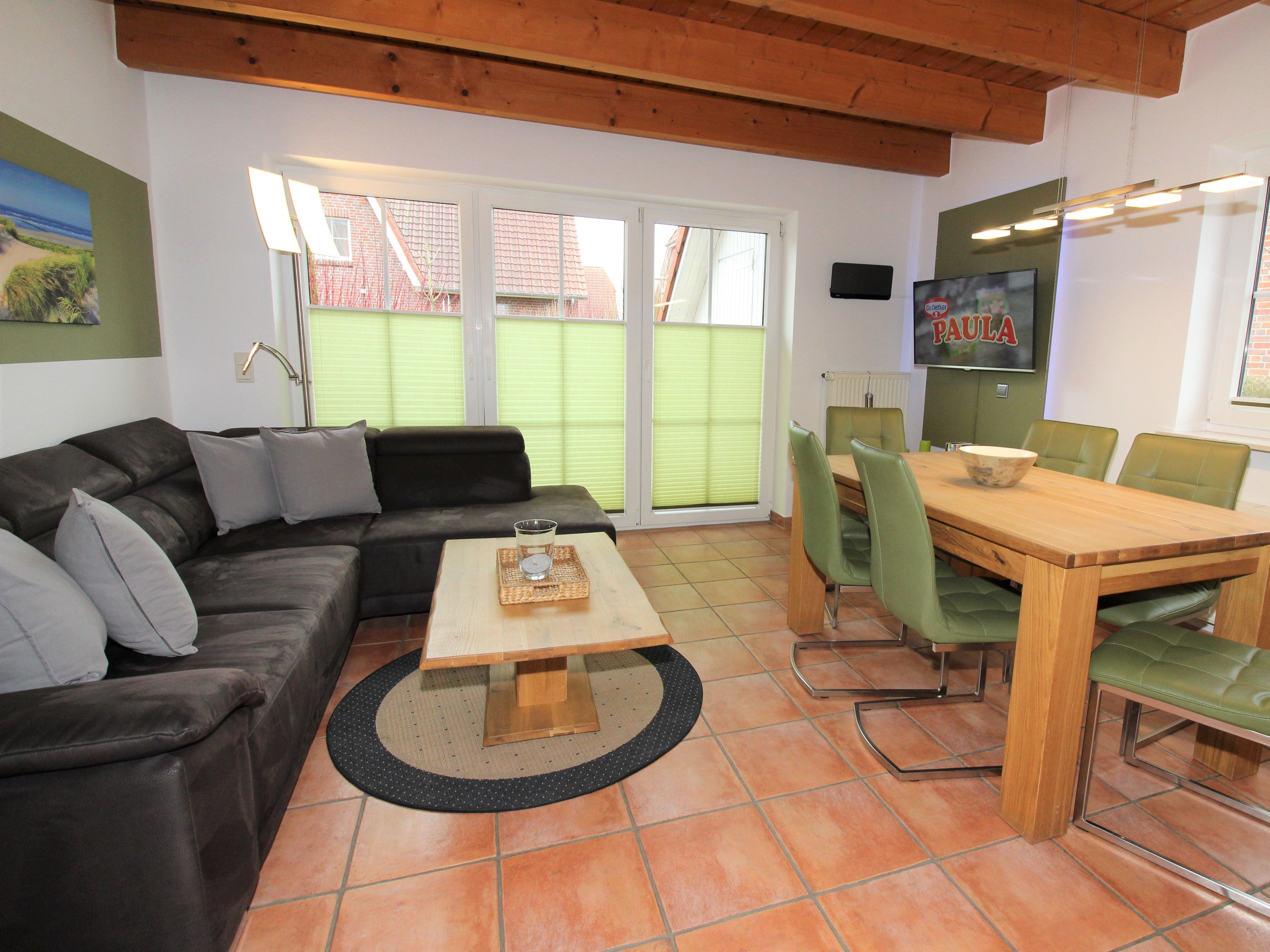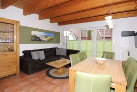 Das Ferienhaus bietet auf 70m² Platz für bis zu 5 Personen mit drei Schlafzimmern. Ein Schlafzimmer mit Doppelbett, ein Schlafzimmer mit zwei Einzelbetten und ein kleines Schlafzimmer für eine Person. Im Ergeschoss befindet sich ein Wohnraum mit voll ausgestattetem Küchenbereich inkl. Geschirrspüler und Mikrowelle. Im Wohnraum und zwei Schlafzimmern sind Flat-TVs installiert. Neben dem Hauptduschbad gibt es eine zusätzliche Toilette. Für die kleinen Gäste ist ein Kinderreisebett (mit Matratze), ein Hochstuhl und eine Wickelkommode vorhanden. Vom Wohnraum aus ist eine Terrasse und ein eigener Gartenbereich erreichbar.