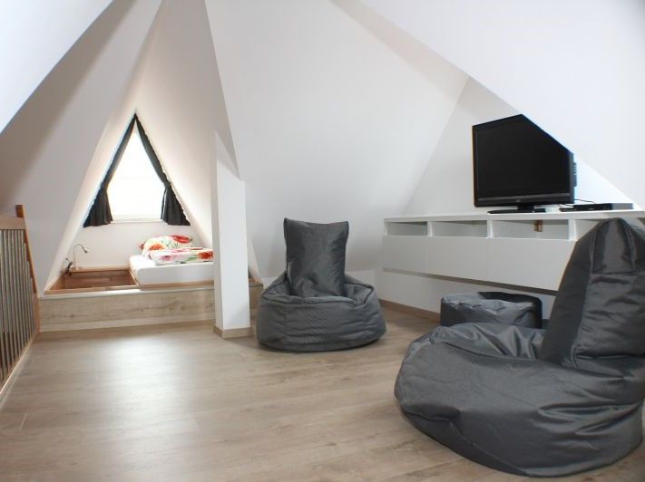 Wohlfühlen wie zuhause. In unserem Ferienreihenhaus (Mitte) ca. 70 m² werden Sie sich rundum wohlfühlen. Die Küche ist vollausgestattet für bis zu 6 Personen. Im EG sind: Küche, Ess- und Wohnbereich, Bad mit Dusche sowie eine kleine Terrasse mit Gartenmöbeln und Abstellraum (Grill ist vorhanden). Im 1. OG sind: Elternschlafzimmer mit einem Doppelbett, Gästezimmer mit zwei Einzelbetten und Bad mit Dusche. Im DG befindet sich ein Chillraum mit zwei Einzelbetten. Zu dem Park gehört auch ein Schwimmbad (freier Eintritt) mit kleiner Sauna (Münzeinwurf).