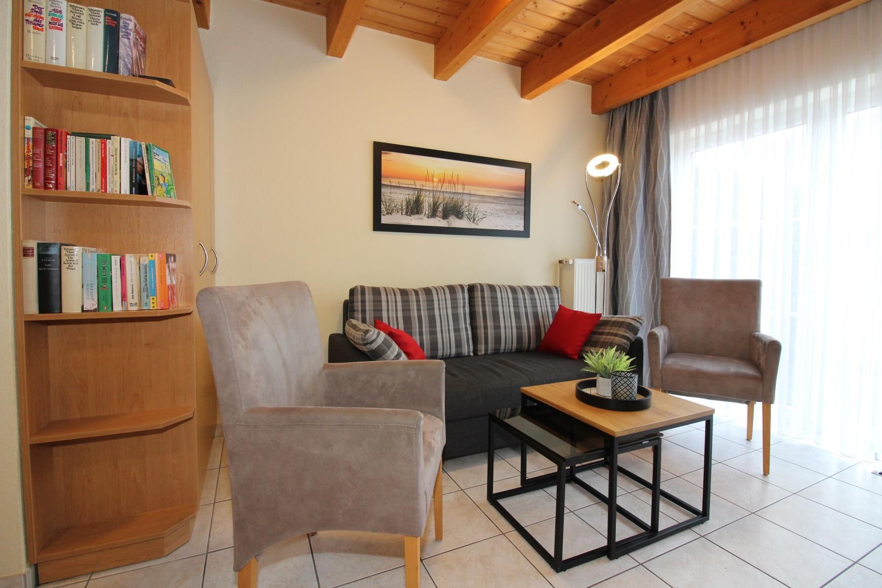 Flachbildschirm (Kabel-TV), Stereoanlage, Bücher u. Spielesammlung sorgen für Unterhaltung.