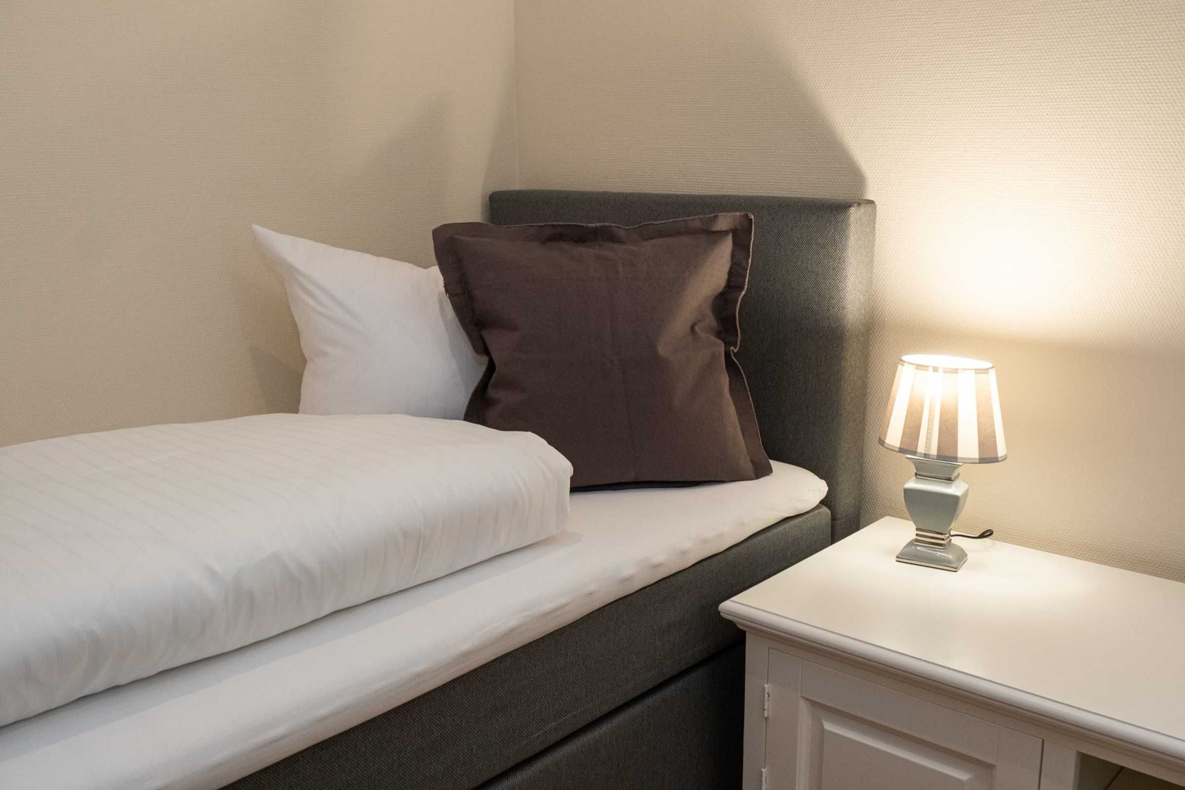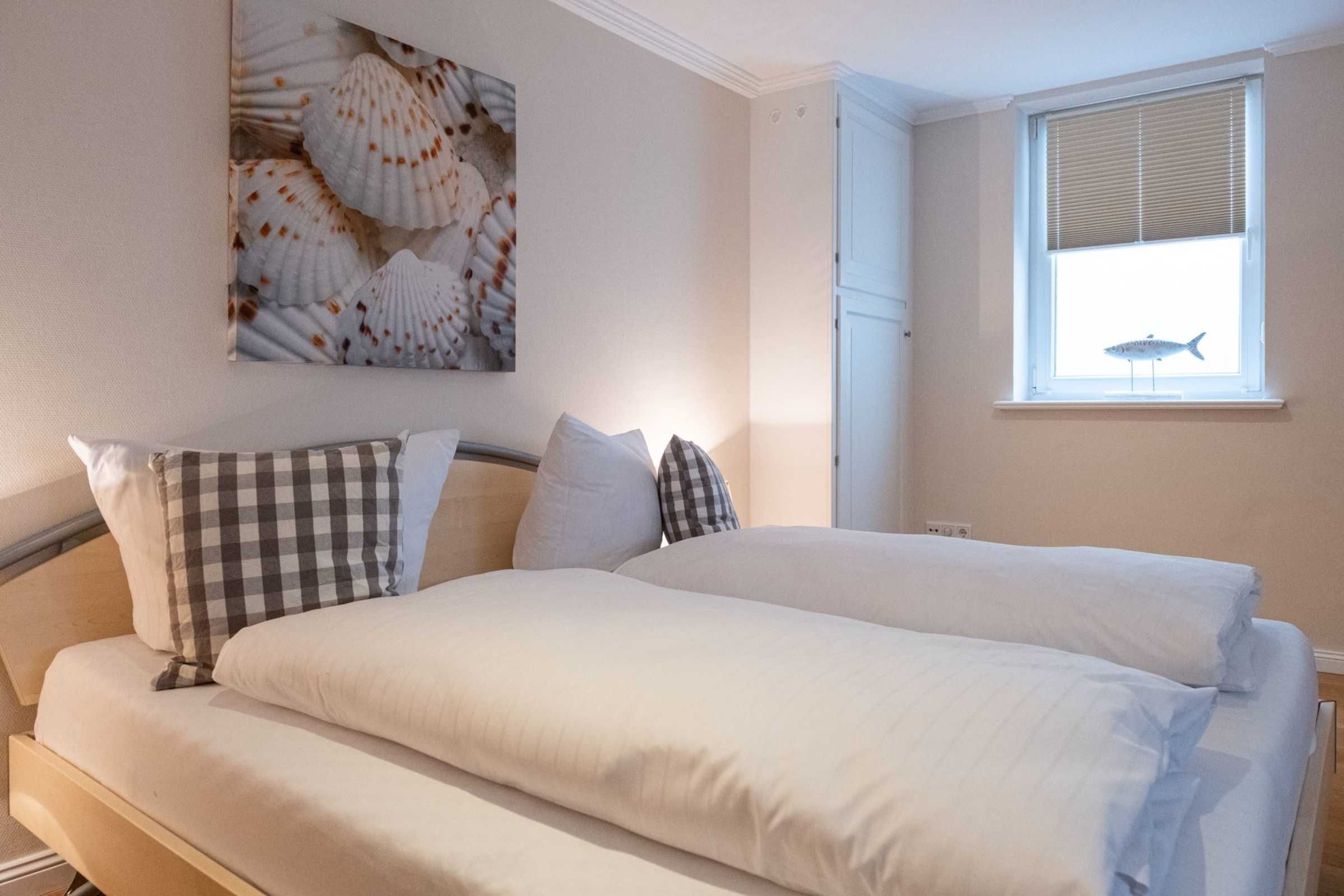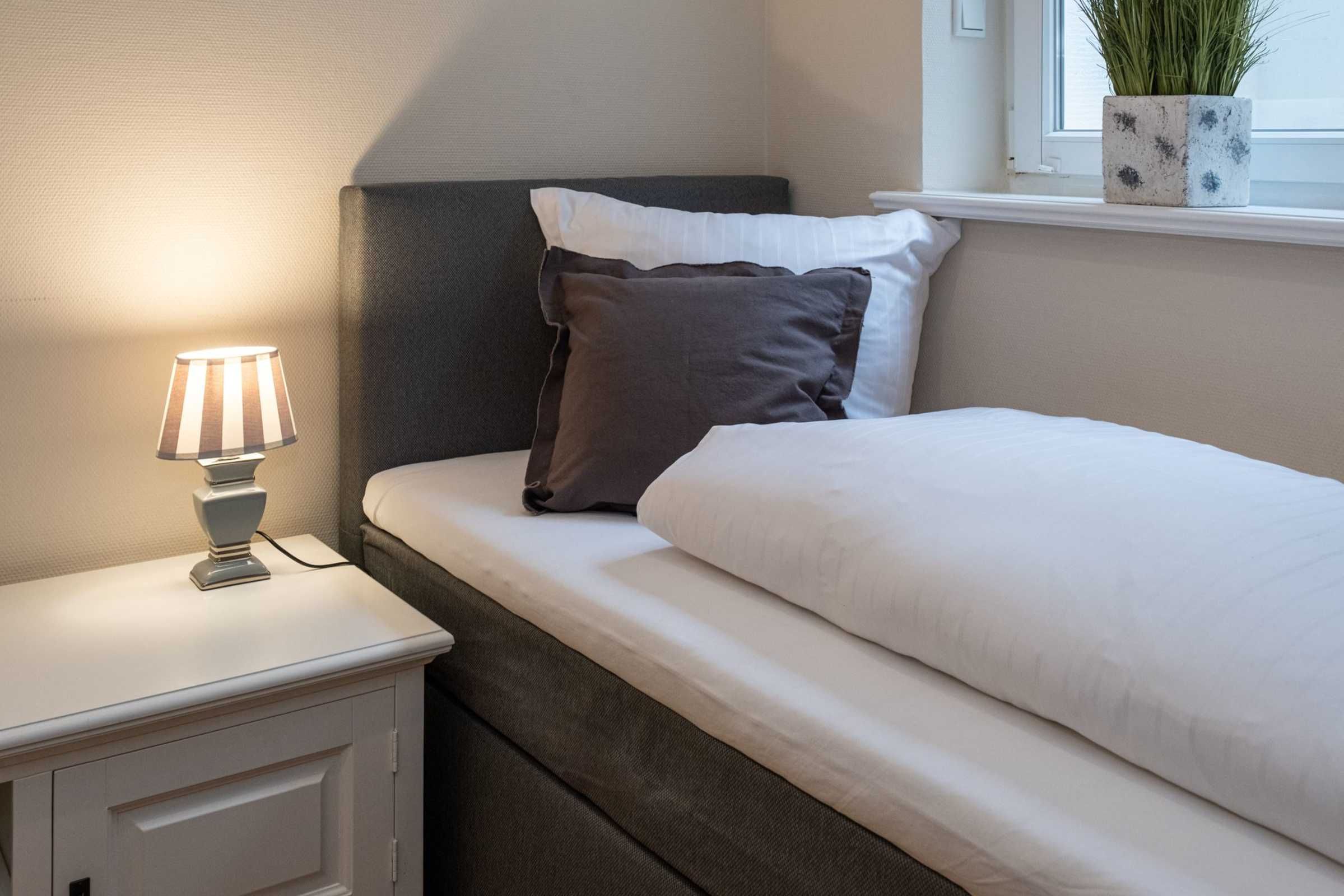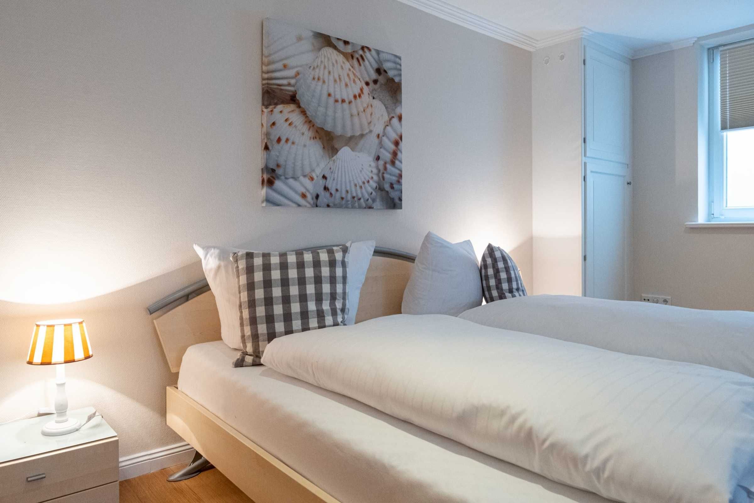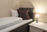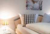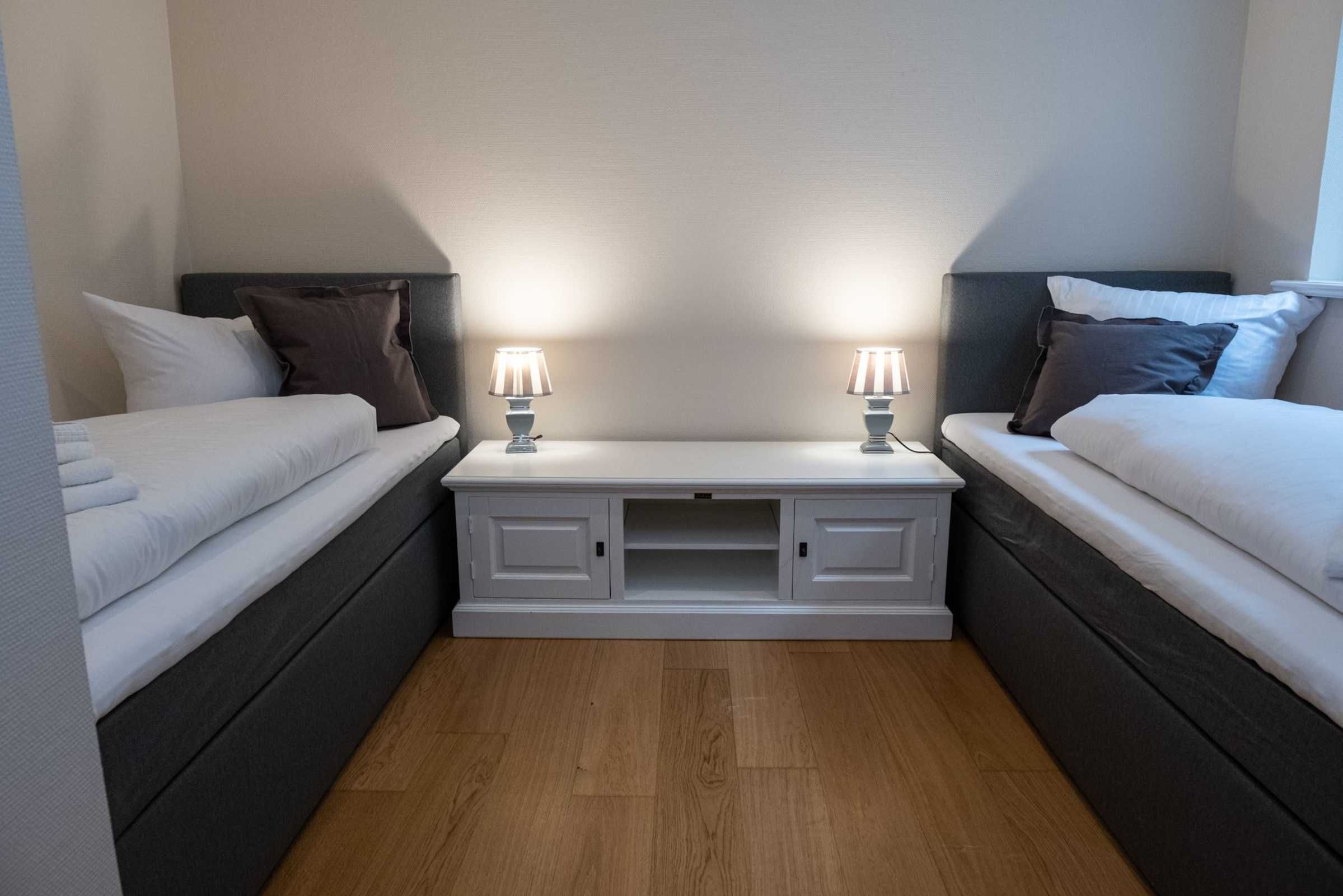Sie finden zwei Schlafzimmer im Untergeschoss vor, eines mit einem Doppelbett ( 180 x 200 ) und eines mit zwei getrennten Boxspringbetten, die aber bei Bedarf auch zusammen gestellt werden könnten.