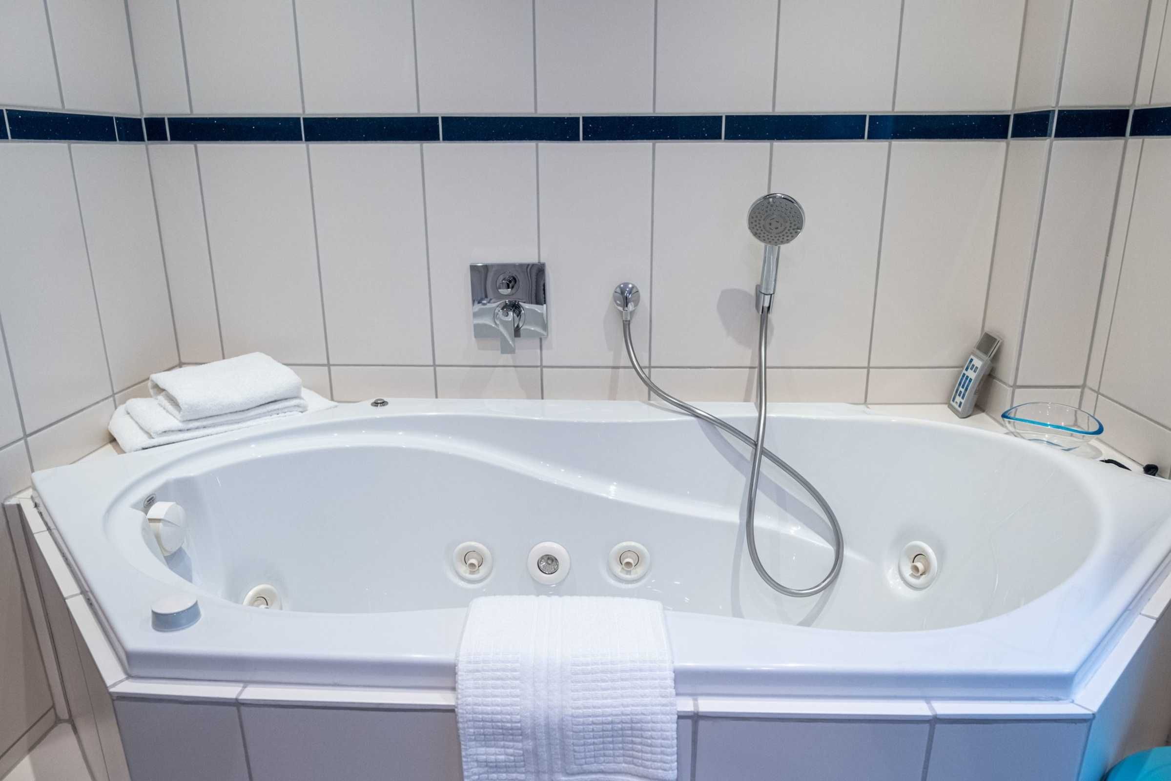 In dem Hauptschlafzimmer, sowie im kleinen Schlafzimmer befindet sich ebenso je ein Fernseher. Das große Badezimmer bfindet sich ebenfalls im UG des Hauses.
