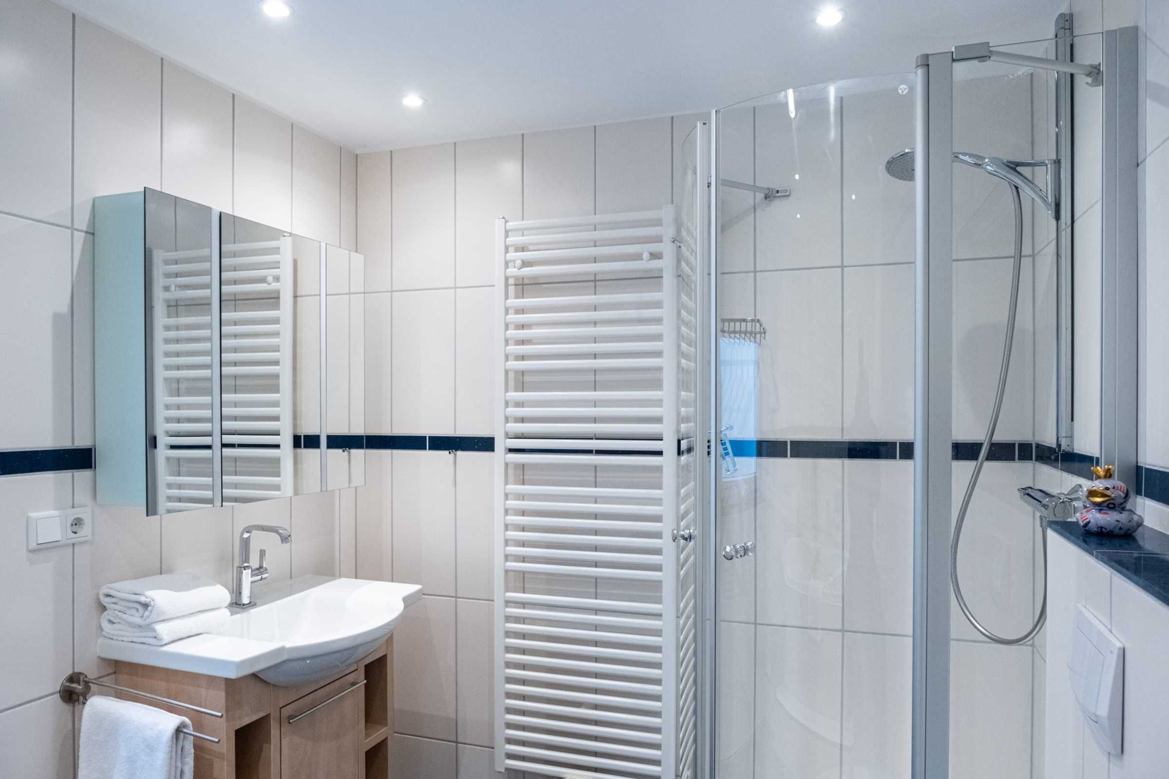 Zusätzlich finden Sie hier das kleine Gästebadezimmer mit Dusche.