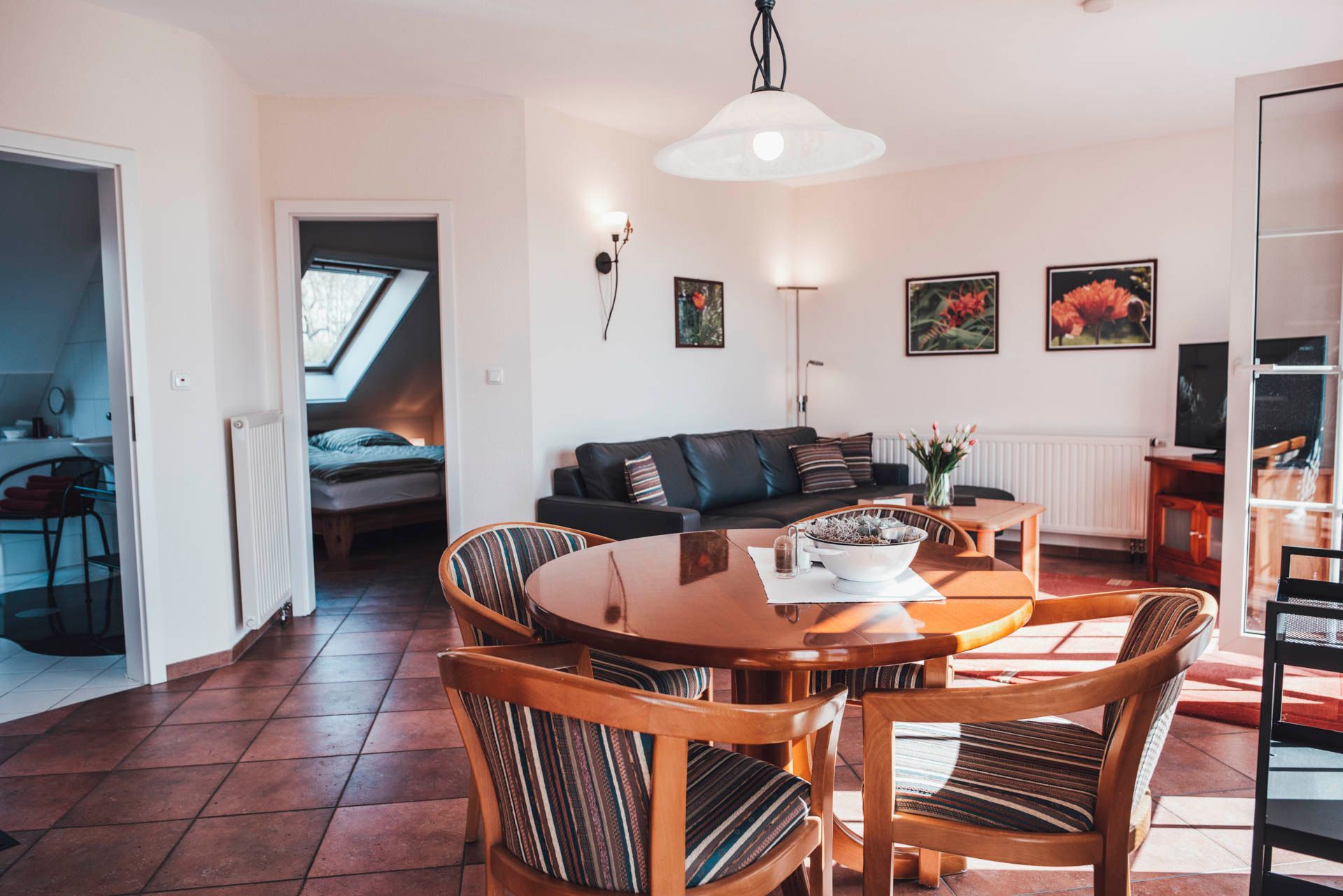 Die 56m² große Ahornwohnung befindet sich in der ersten Etage und bietet einen tollen Blick in den großen Bauerngarten und über die Weiten der Marsch. Die Wohnung besteht aus einem großen Wohnraum mit offener Küche und einem Schlafzimmer für 2 Personen sowie einem geräumigen Badezimmer mit Dusche. Handtücher, Bettwäsche und die Endreinigung sind im Preis enthalten. Alle Wohnungen sind Nichtraucherwohnungen. WLAN steht kostenfrei zur Verfügung. Auf Wunsch stellen wir Babybett und Hochstuhl bereit.