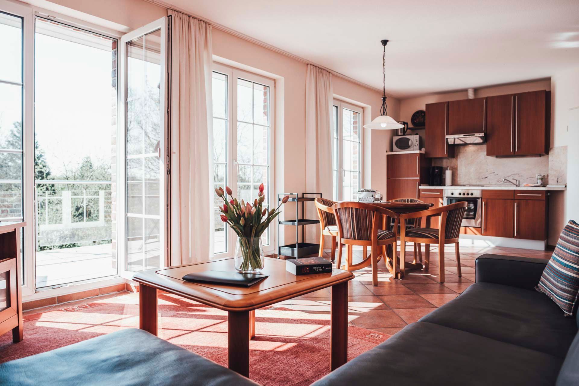 Die 56m² große Ahornwohnung befindet sich in der ersten Etage und bietet einen tollen Blick in den großen Bauerngarten und über die Weiten der Marsch. Die Wohnung besteht aus einem großen Wohnraum mit offener Küche und einem Schlafzimmer für 2 Personen sowie einem geräumigen Badezimmer mit Dusche. Handtücher, Bettwäsche und die Endreinigung sind im Preis enthalten. Alle Wohnungen sind Nichtraucherwohnungen und für Allergiker geeignet. WLAN steht kostenfrei zur Verfügung. Auf Wunsch stellen wir Babybett und Hochstuhl bereit.