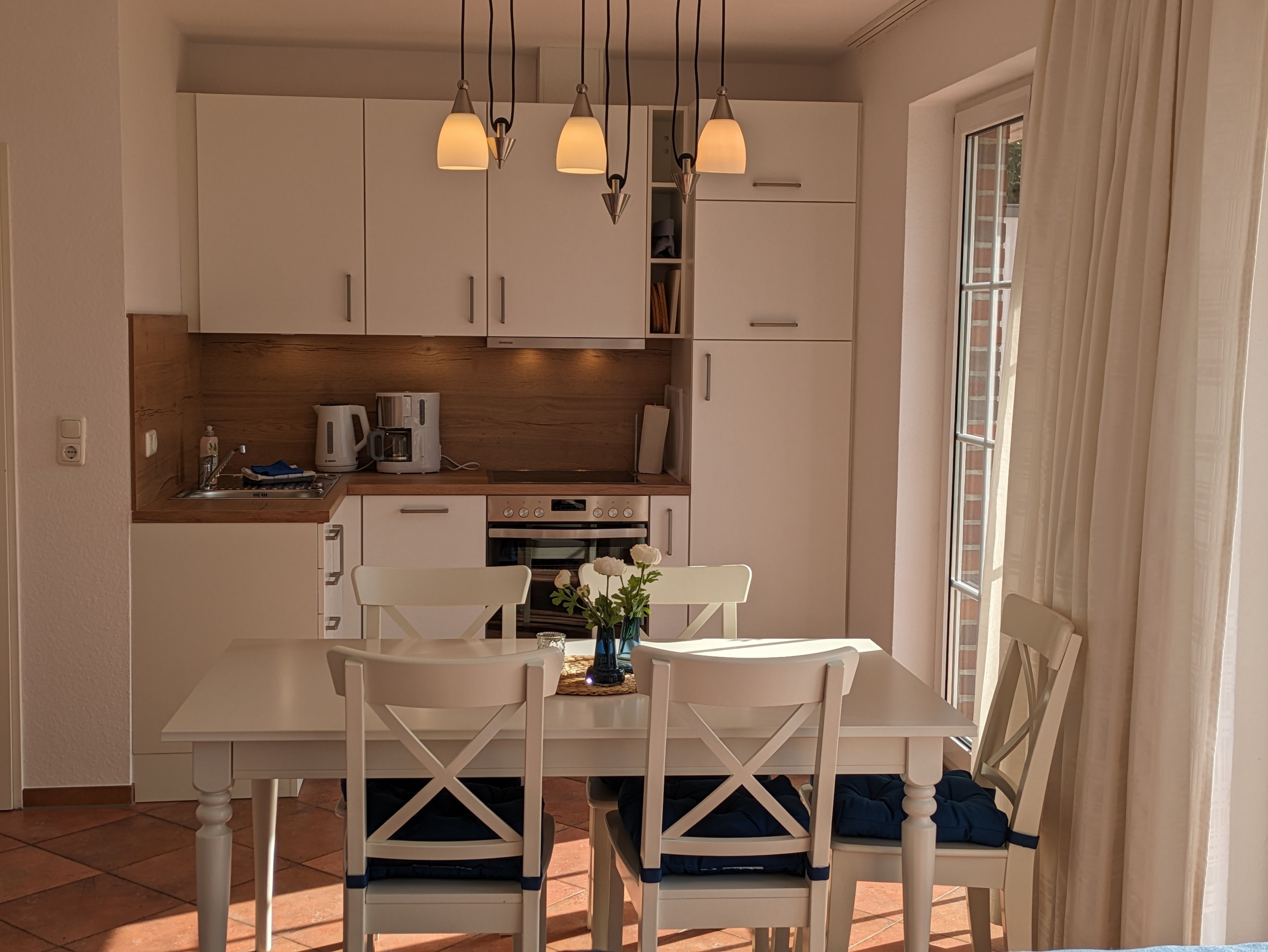 Die 76m² große Kastanienwohnung wurde 2024 komplett renoviert, neu möbliert und mit einer neuen Küche ausgestattet. Sie ist in der ersten Etage und bietet einen tollen Ausblick in den großen Bauerngarten und die Weiten der Marsch. Die Wohnung umfasst einen geräumigen Wohn- und Essbereich mit voll ausgestatteter Küche, 2 Schlafzimmer und ein großes Badezimmer mit Dusche. Handtücher, Bettwäsche und Endreinigung sind im Preis enthalten. Alle Wohnungen sind Nichtraucherwohnungen. WLAN steht kostenfrei zur Verfügung. Bei Bedarf stellen wir selbstverständlich Babybett und Hochstuhl bereit.