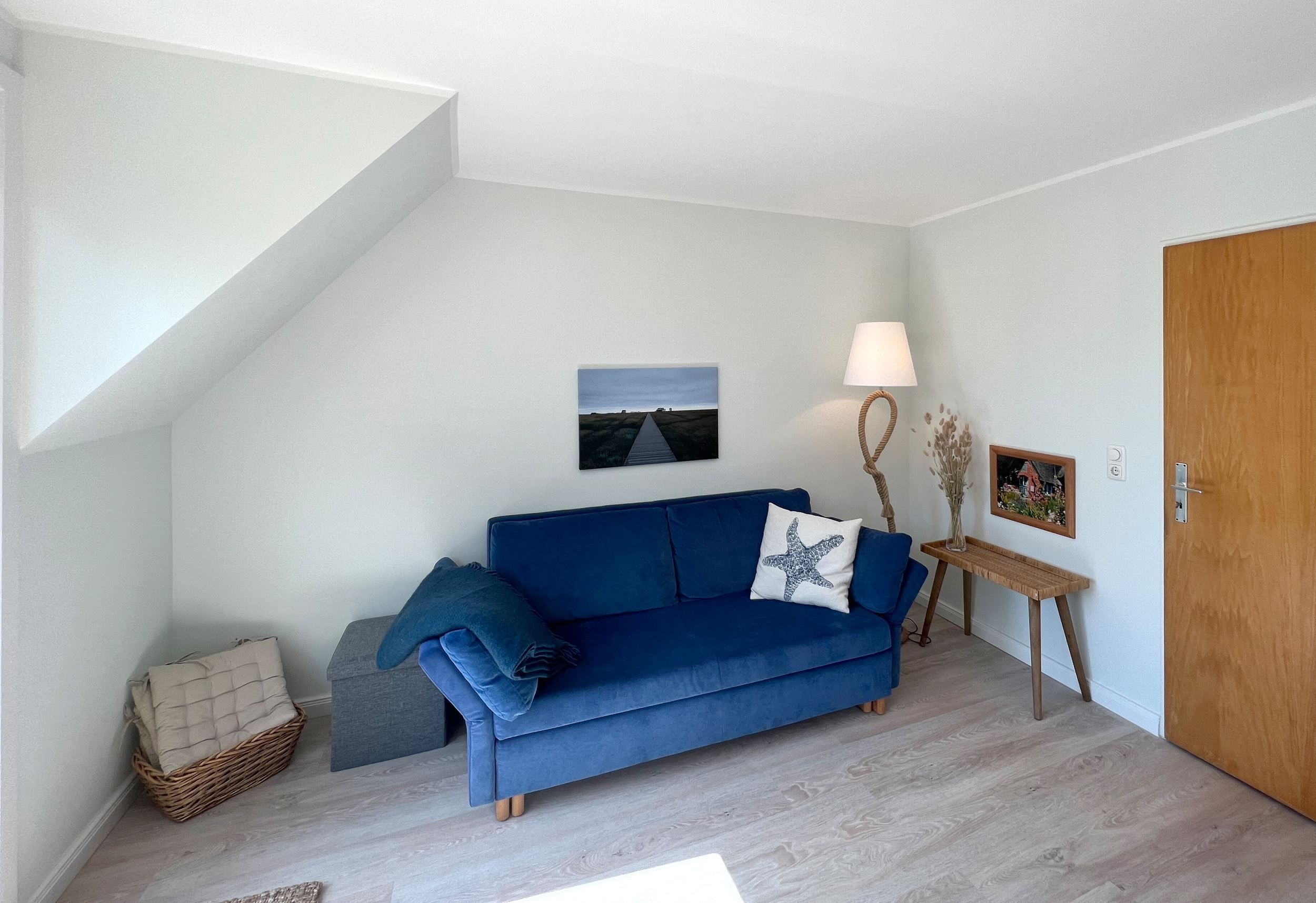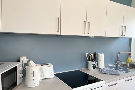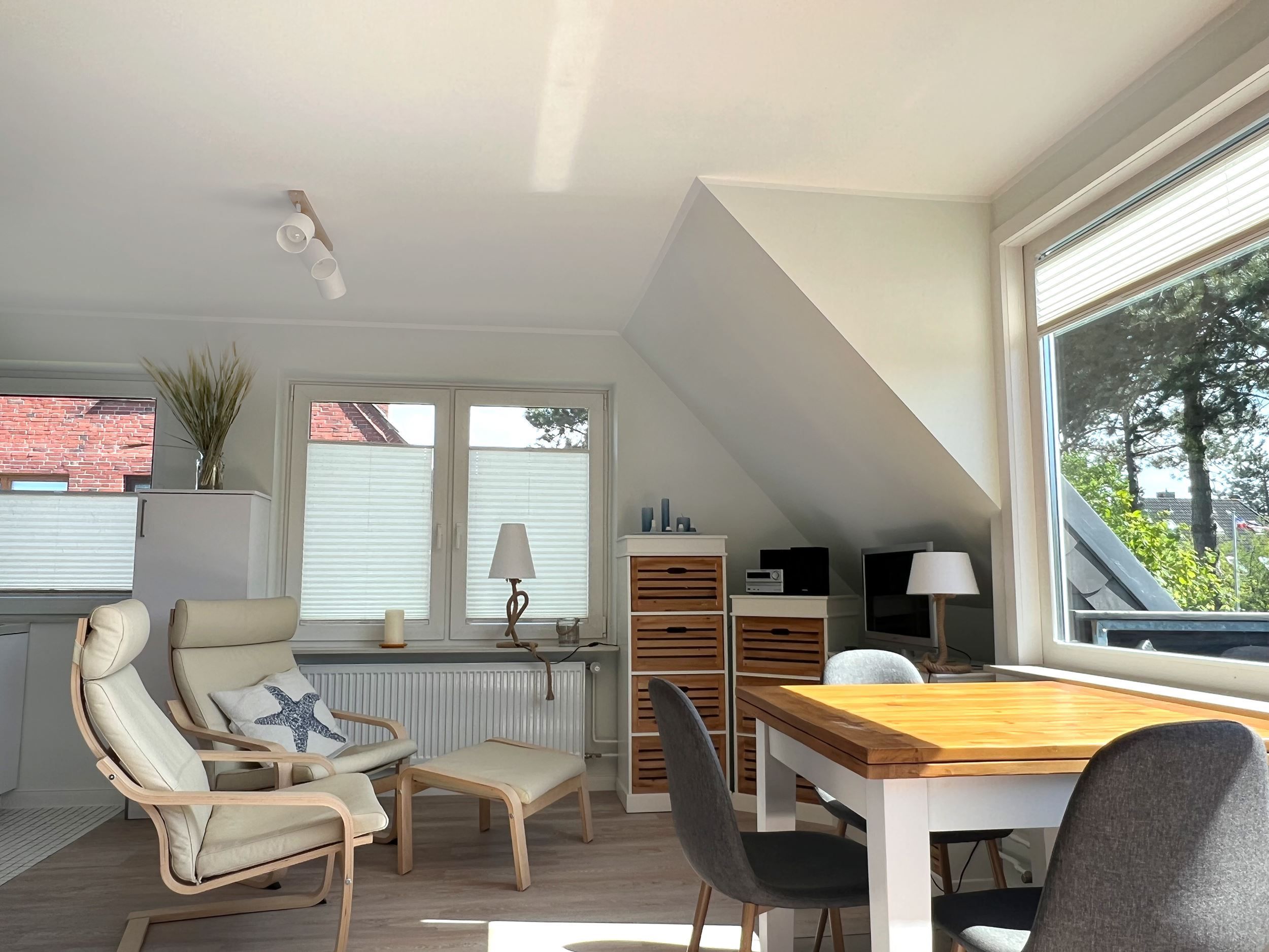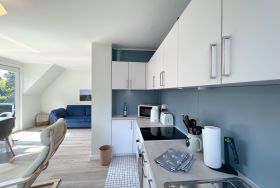 Wohnung Ferienglück Wohlfühlatmosphäre mit sehr geschmackvoller Ausstattung auf 45 qm! Genießen Sie Ihren Urlaub in dieser sehr hellen 2-3 Personen Wohnung mit Balkon in westlicher Ausrichtung. In der modernen und offenen Küchenzeile bringt das Kochen richtig Spaß. Genießen Sie die ruhige Lage im Ortsteil Dorf. Binnen weniger Gehminuten erreichen Sie das Zentrum im heimeligen Dorf mit seinen Cafes, Restaurants, Galerien, kleinen Läden, Bäcker und einem Frische-Edeka Markt. Der PKW-Stellplatz 03 befindet sich auf dem Grundstück..