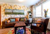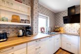 In der gemütlichen Wohnküche mit großen Fenstern und Blick zum Garten lässt sich herrlich die Zeit vertrödeln.