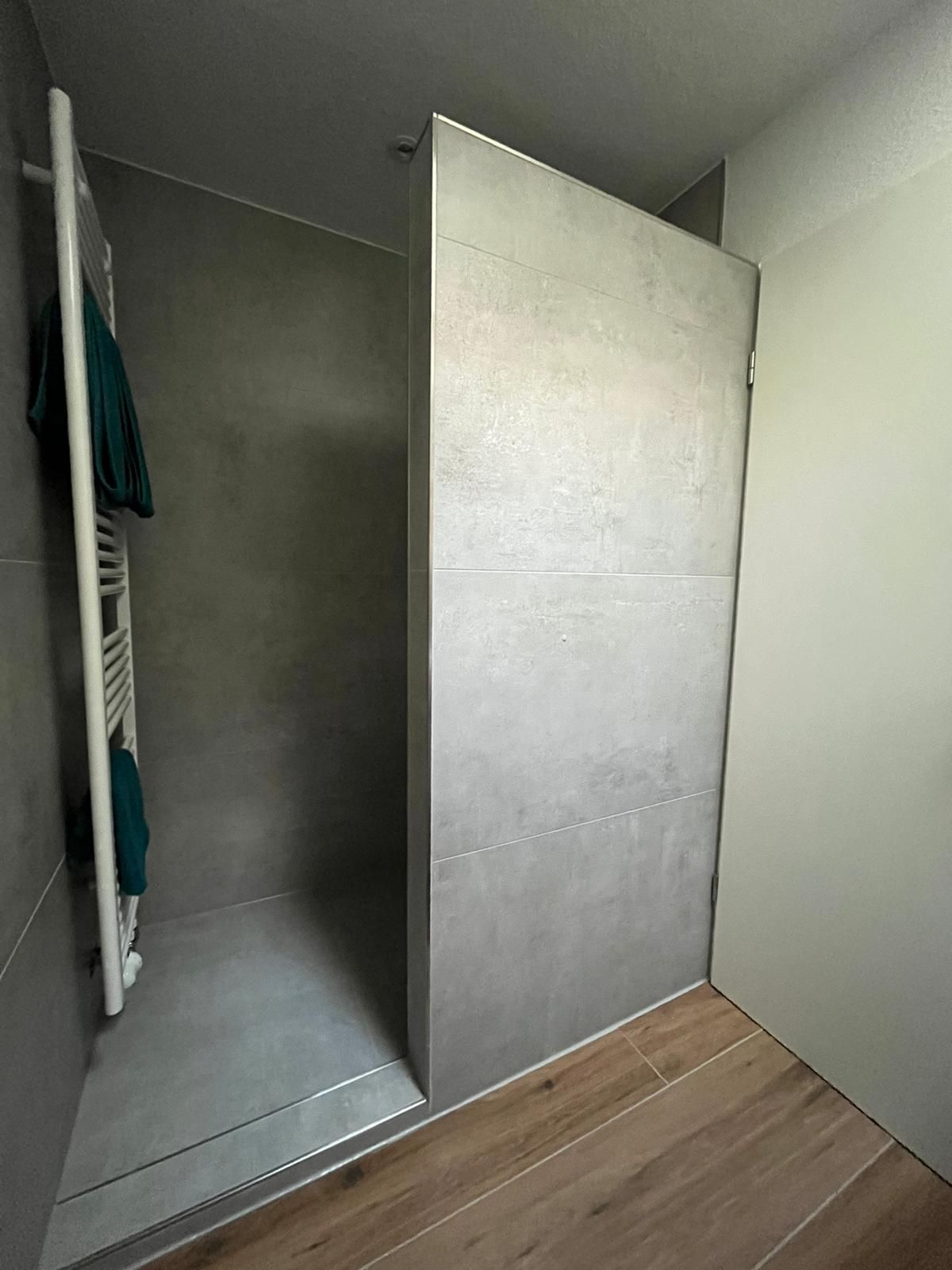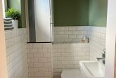 Im Obergeschoss befinden sich zwei Schlafräume und ein Bad mit Dusche und Fenster.
