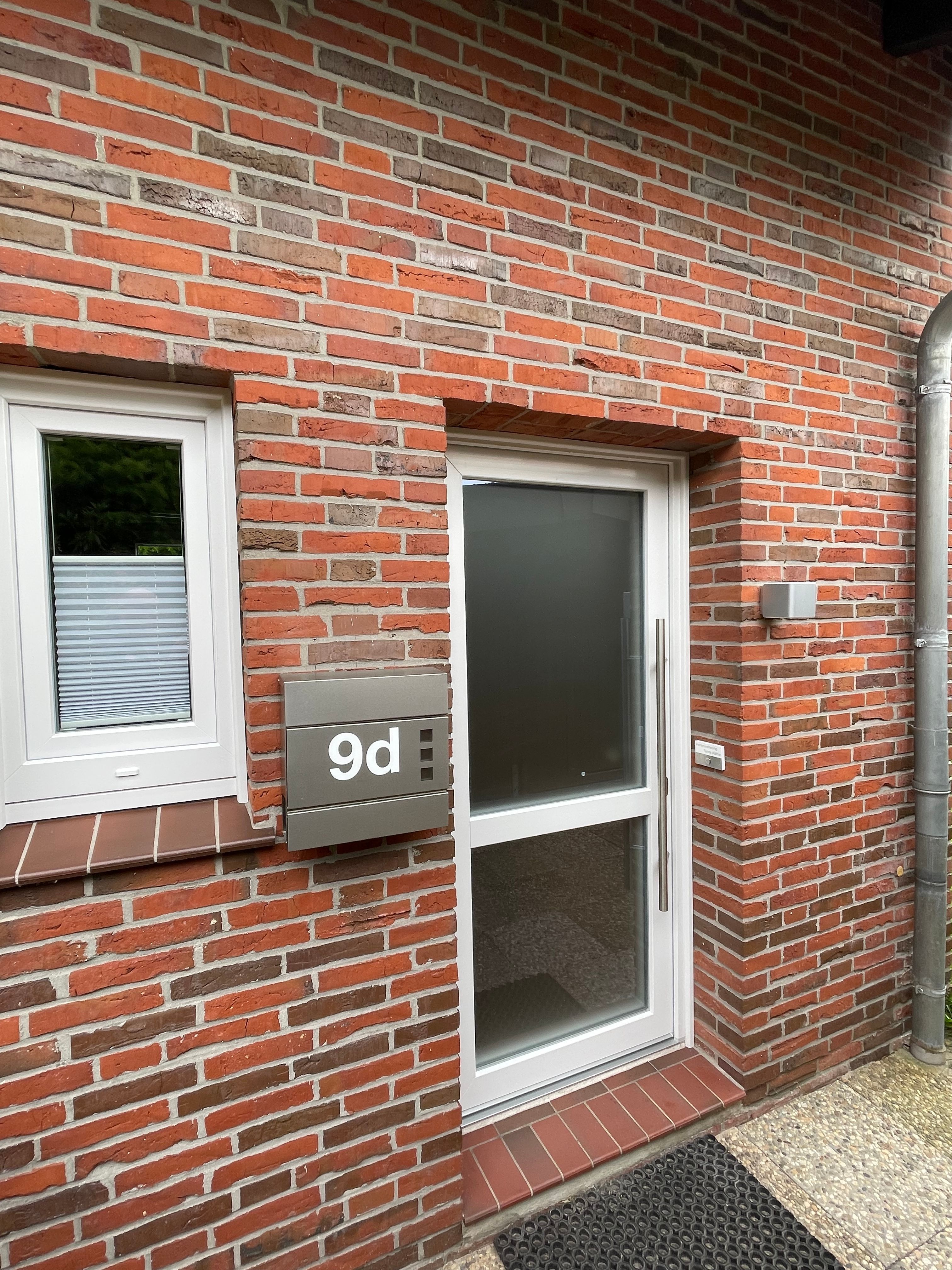 Der Haupteingang befindet sich auf der Rückseite der Wohnung. Sie müssen einen Weg entlang des Hauses gehen und kommen dann direkt zum Eingang der Wohnung.