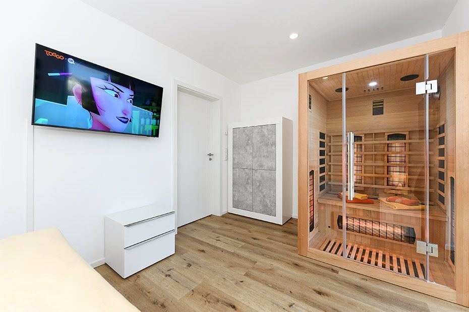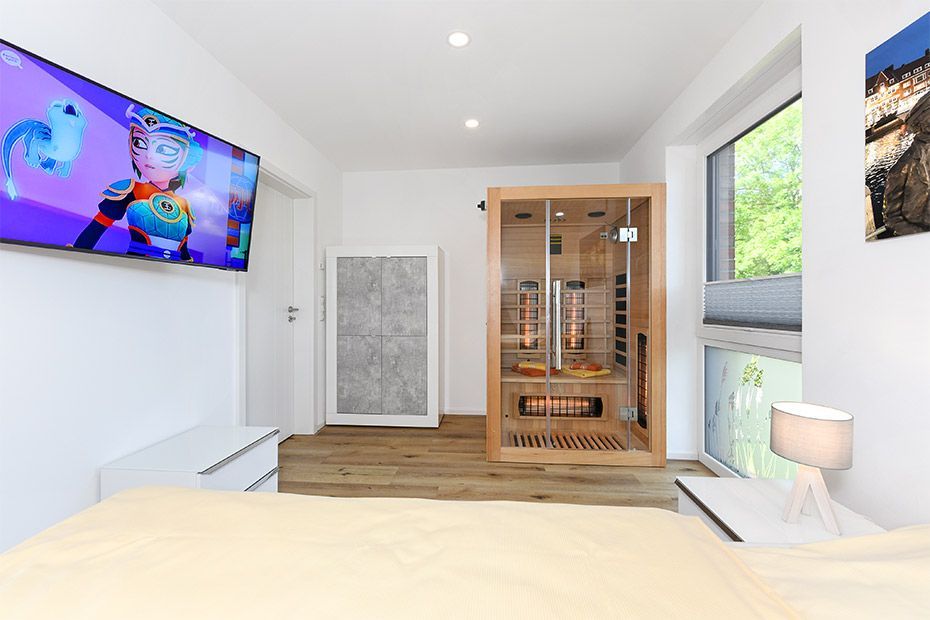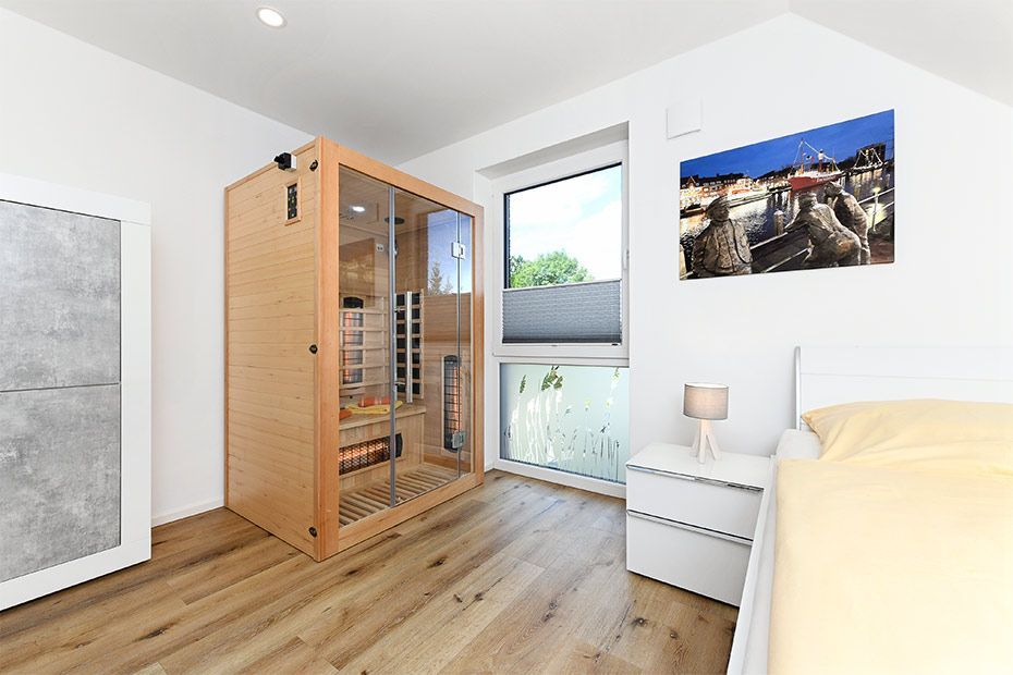 Im Haus ist sogar eine eigene Sauna vorhanden.