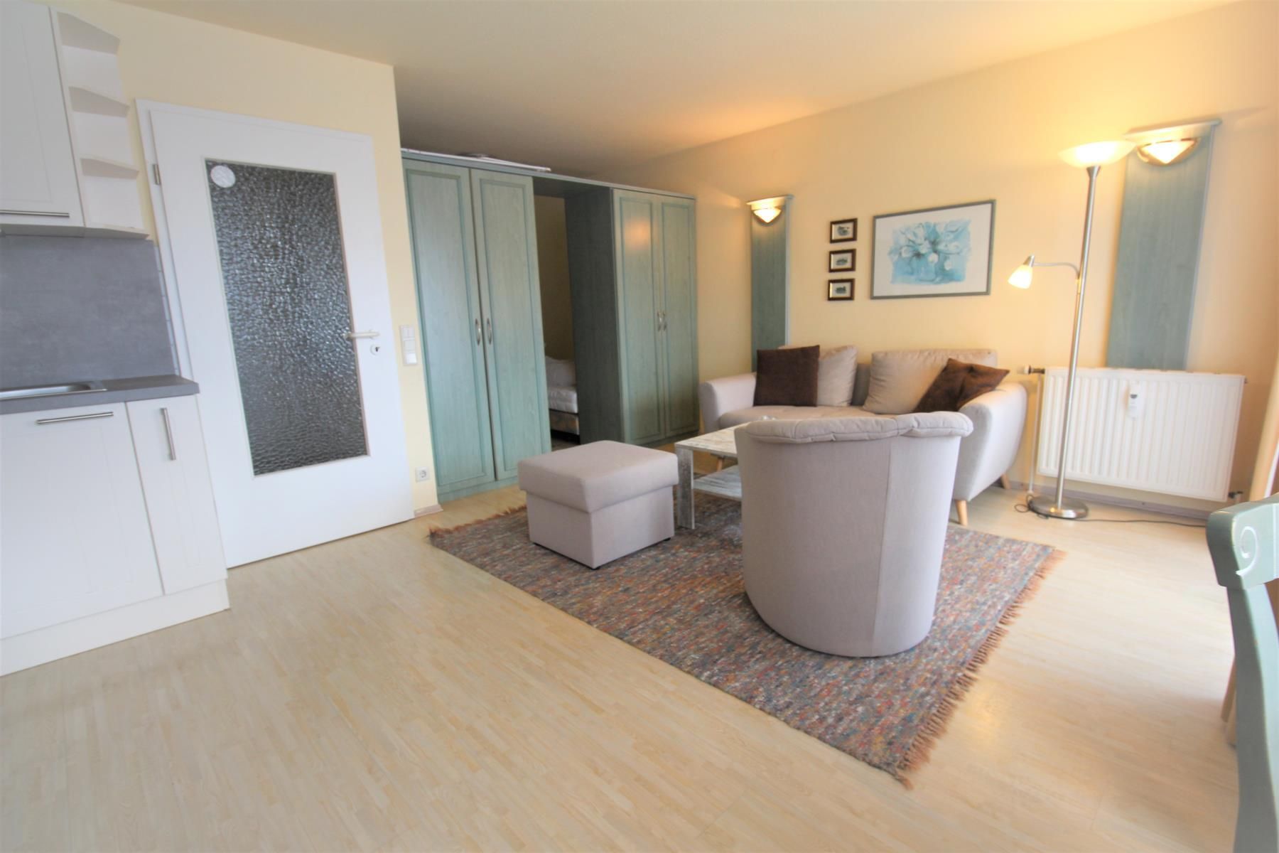Sie wohnen in einem 1-Zimmer-Appartement für bis zu 2 Personen auf 40 m² Wohnfläche im 1. Obergeschoss. Wohn-/Schlafraum getrennt durch Raumteiler mit zwei getrennten Betten, separater Essplatz, voll ausgestatteter Küchenbereich, Dusche/WC, Balkon, SAT-Farb-TV, Telefon. KFZ-Stellplatz in der Tiefgarage.