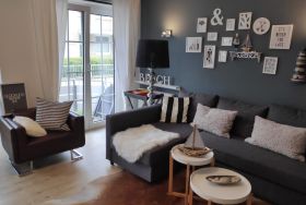 Das Appartement hat ca. 37 m² und ist ideal geeignet für bis zu 2 Personen; ggf. kann auf der Schlafcouch im Wohn-/Essbereich noch ein Kind schlafen. Für eine erholsame Nachtruhe steht Ihnen ein bequemes Boxspringbett (140 cm x 200 cm) zur Verfügung. Im Süd-West ausgerichteten Essplatz im Erker können Sie bis zum Deich schauen und z.B. gemütlich frühstücken oder einen Spieleabend machen.