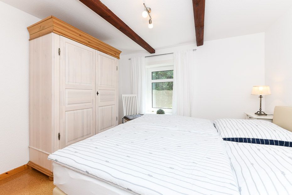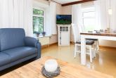 Größe ca. 60 Quadratmeter, Wohnraum mit integrierter Küche, Schlafzimmer, zweites separates Schlafzimmer/Kinderzimmer, Badezimmer mit Dusche, Waschtisch und WC, Obergeschoss, optimal für 2 bis 5 Personen.