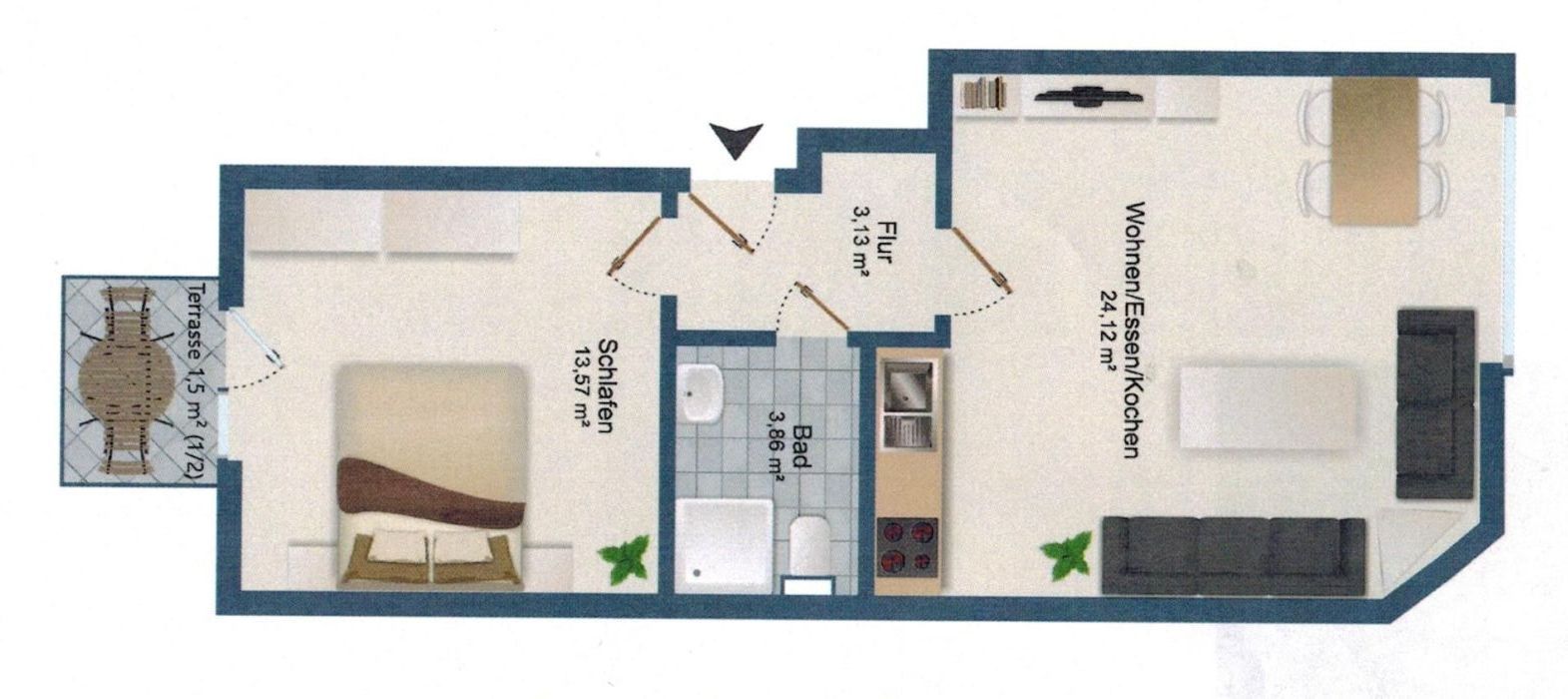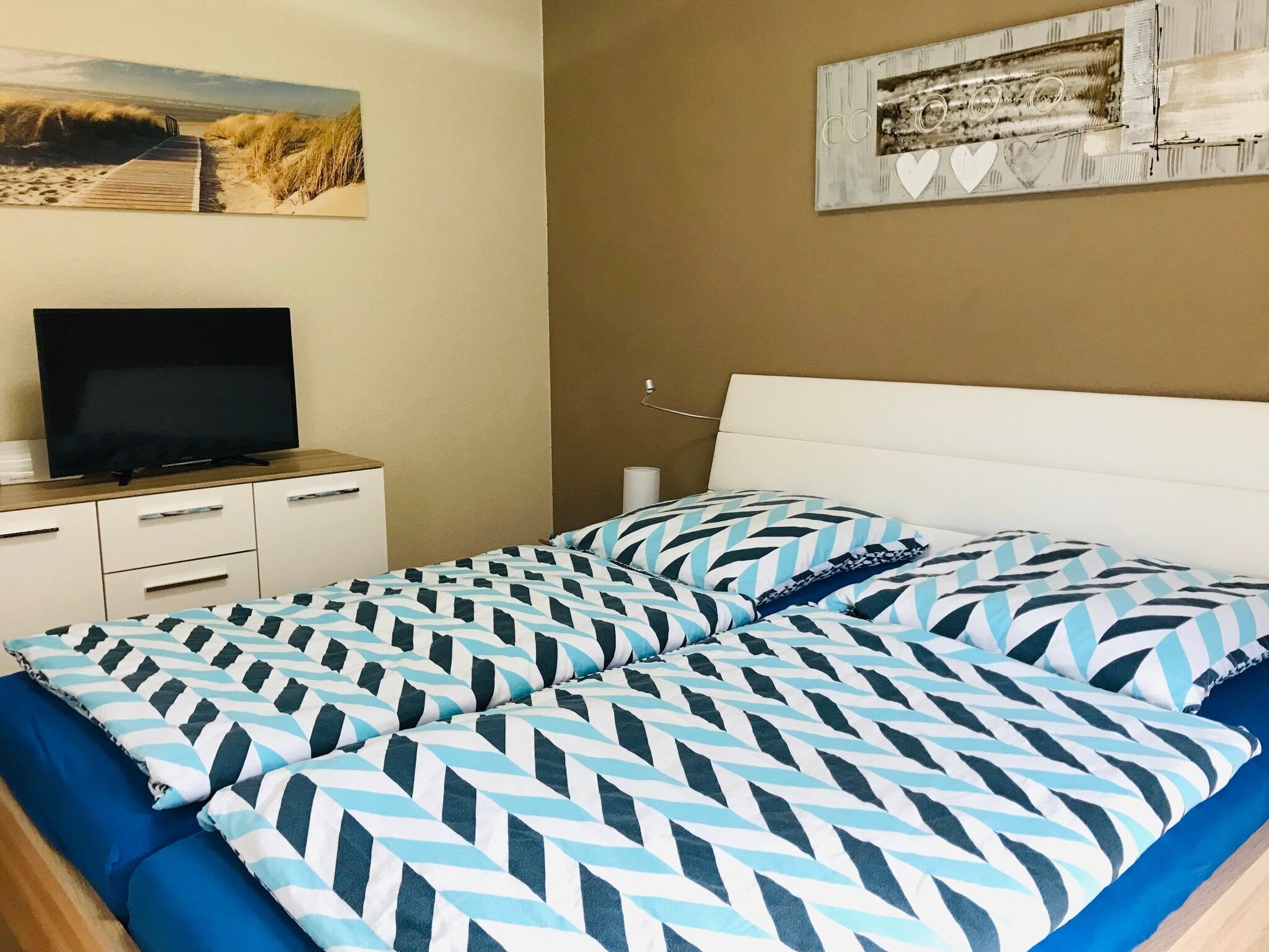 Sie wohnen in einem großzügigen 2-Zimmer-Appartement für bis zu 4 Personen auf ca. 46 m² Wohnfläche im Erdgeschoss. Das Schlafzimmer wurde neu eingerichtet und bietet ein gemütliches Doppelbett mit modernem Schrank und viel Stauraum mit Globo-Lightning. Der Wohn-Schlafraum hat eine bequeme Doppelbettcouch, separaten Essplatz und einen voll ausgestatteten Küchenbereich. Zur Wohnung gehören ein komplett renoviertes Bad mit Dusche/WC, Balkon, SAT-TV und WLAN. PKW-Stellplatz in der Tiefgarage.