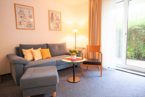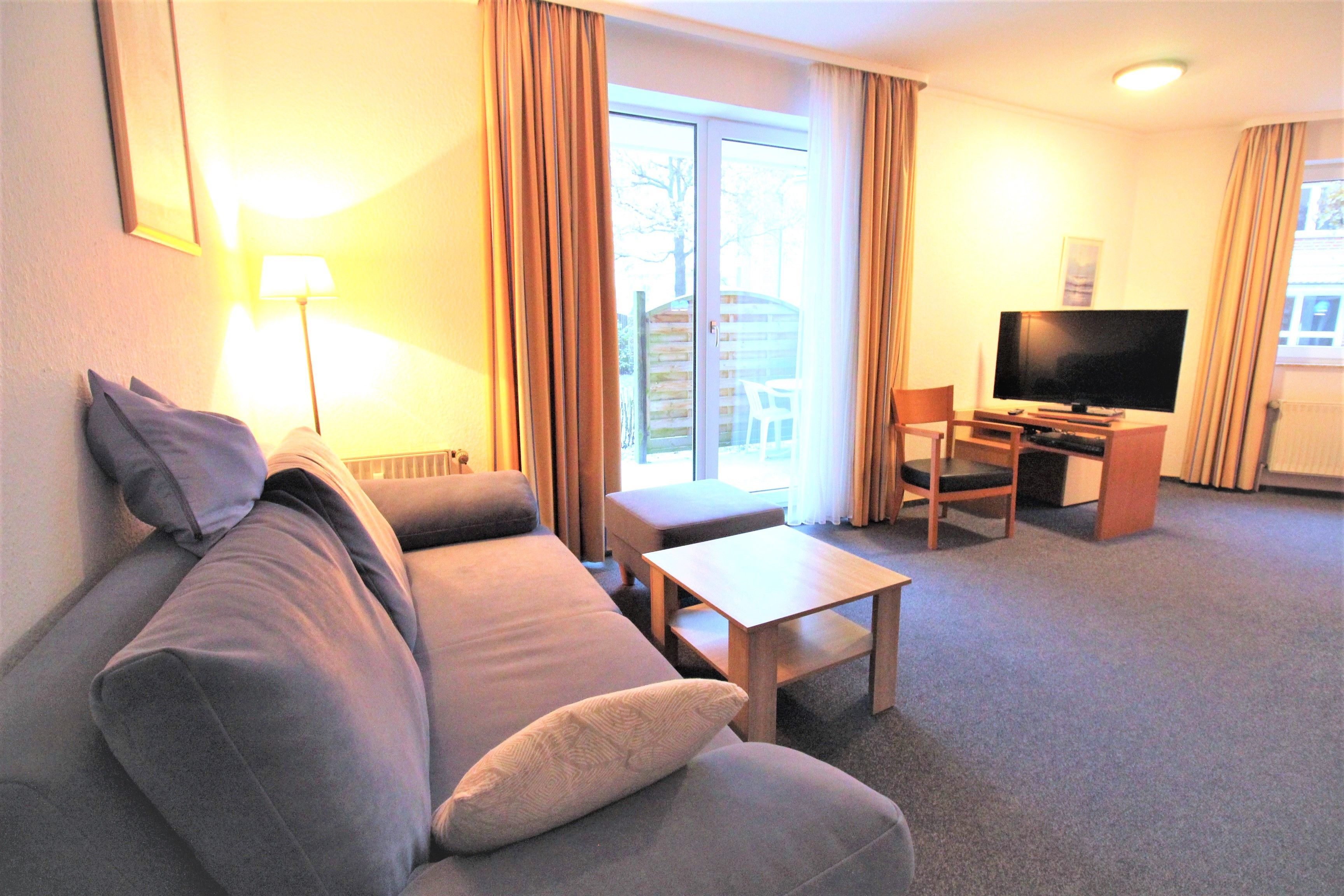 Sie wohnen in einem 1-Zimmer-Appartement für bis zu 2 Personen auf ca. 35 m². Ein Wohn-/Schlafraum mit Doppelbett (hinter einem Raumteiler) und gemütlicher Couchgarnitur mit zusätzlichem Hocker für die Beine, separater Essplatz, voll ausgestatteter Küchenbereich, Dusche/WC, Terrasse, SAT-Flachbild-TV und Mini-HiFi-Anlage. Tiefgarageneinstellplatz für PKW.