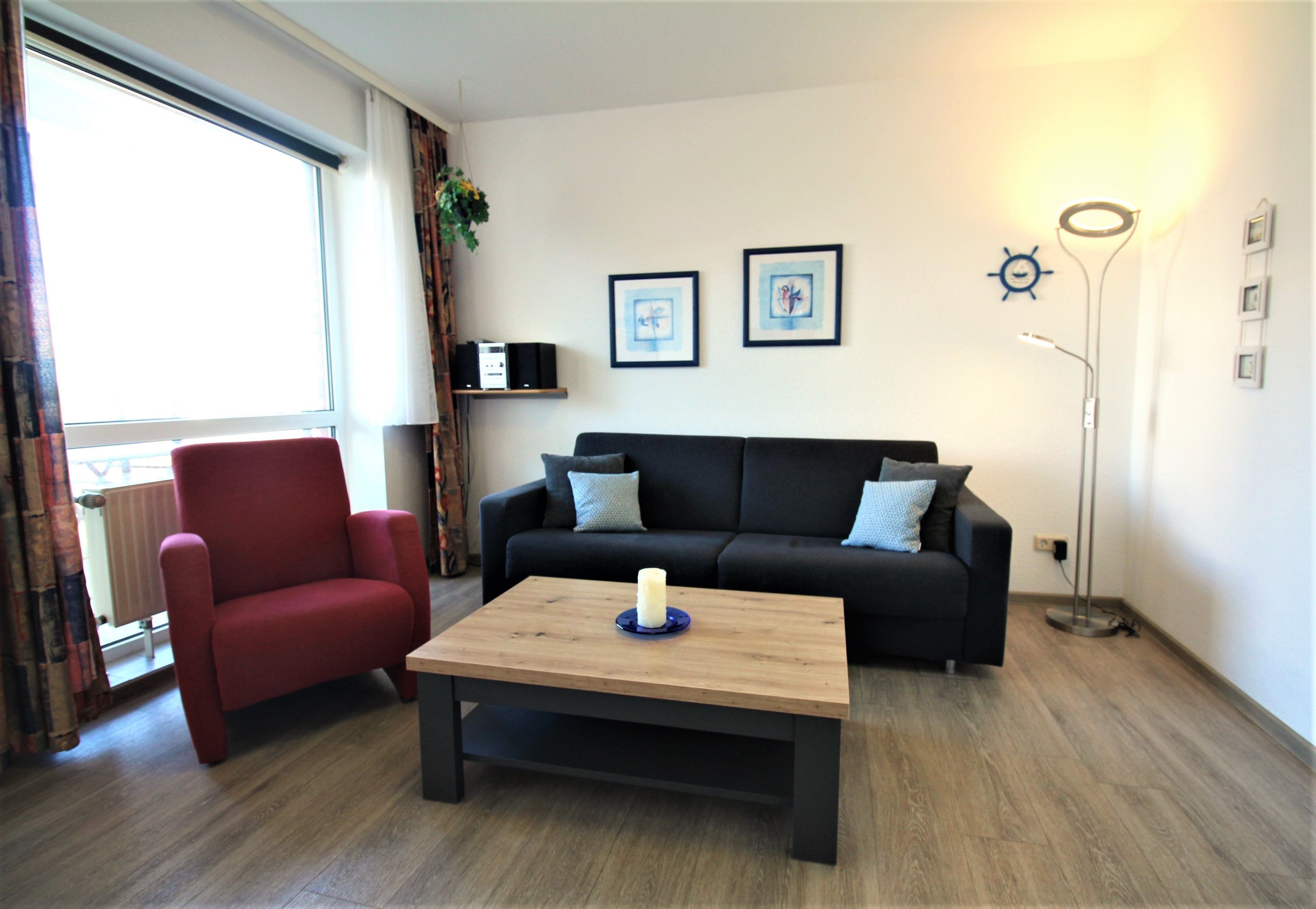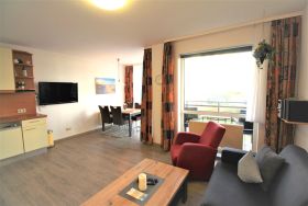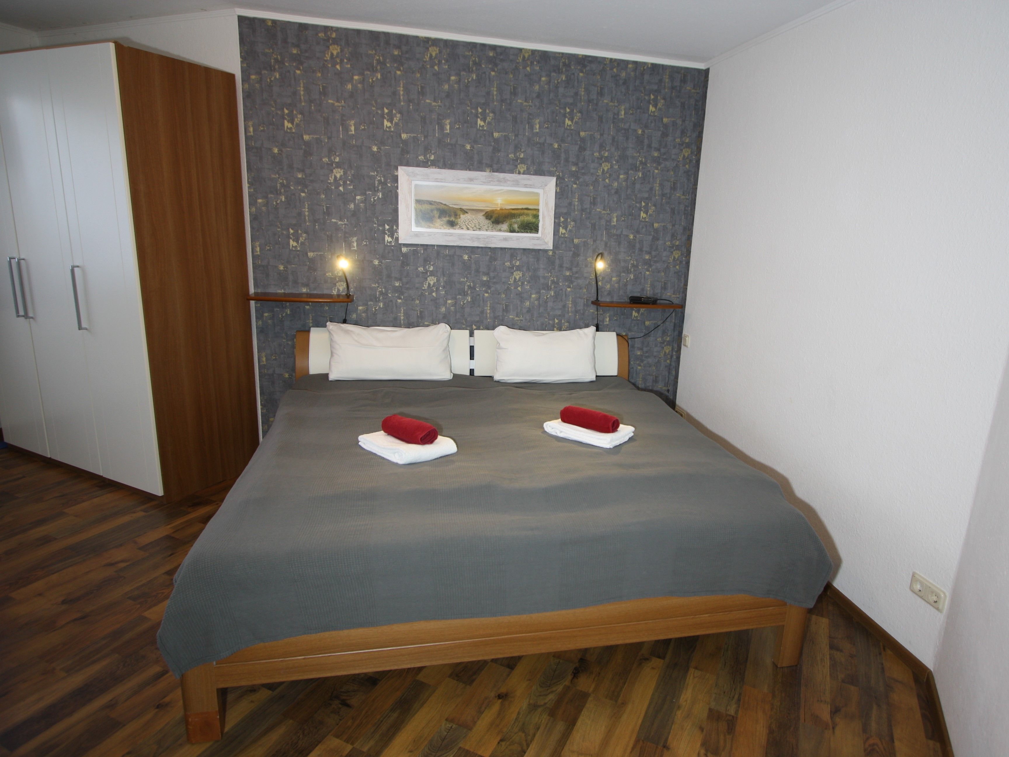 2-Zimmer-Appartement für bis zu 4 Personen auf ca. 46 m². Schlafzimmer mit Doppelbett, Wohn-Schlafraum mit Doppelbettcouch, TV, separatem Essplatz, voll ausgestattetem Küchenbereich, Balkon oder Terrasse, Bad mit Dusche/WC. WLAN und PKW-Stellplatz vorhanden.