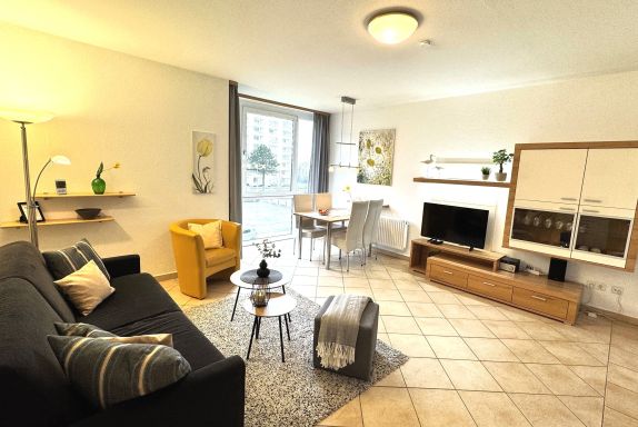 2-Zimmer-Appartement für bis zu 4 Personen auf ca. 46 m² mit Seeblick. Schlafzimmer mit Doppelbett, Wohn-Schlafraum mit Doppelbettcouch, TV, separatem Essplatz, voll ausgestattetem Küchenbereich, Balkon oder Terrasse, Bad mit Dusche/WC. teilweise WLAN und PKW-Stellplatz vorhanden.