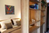Hier ist auf 42qm Wohnfläche genügend Platz für 4 Personen. Ideal für Familien: die Wohnung verfügt über ein dezent vom Wohnraum abgegrenztes Doppelbett und ein separates Schlafzimmer mit zwei Einzelbetten. Die Einzelbetten sind sowohl für Kinder als auch Erwachsene geeignet und auch die Couch im Wohnzimmer lässt sich zur Doppelbettcouch ausziehen.