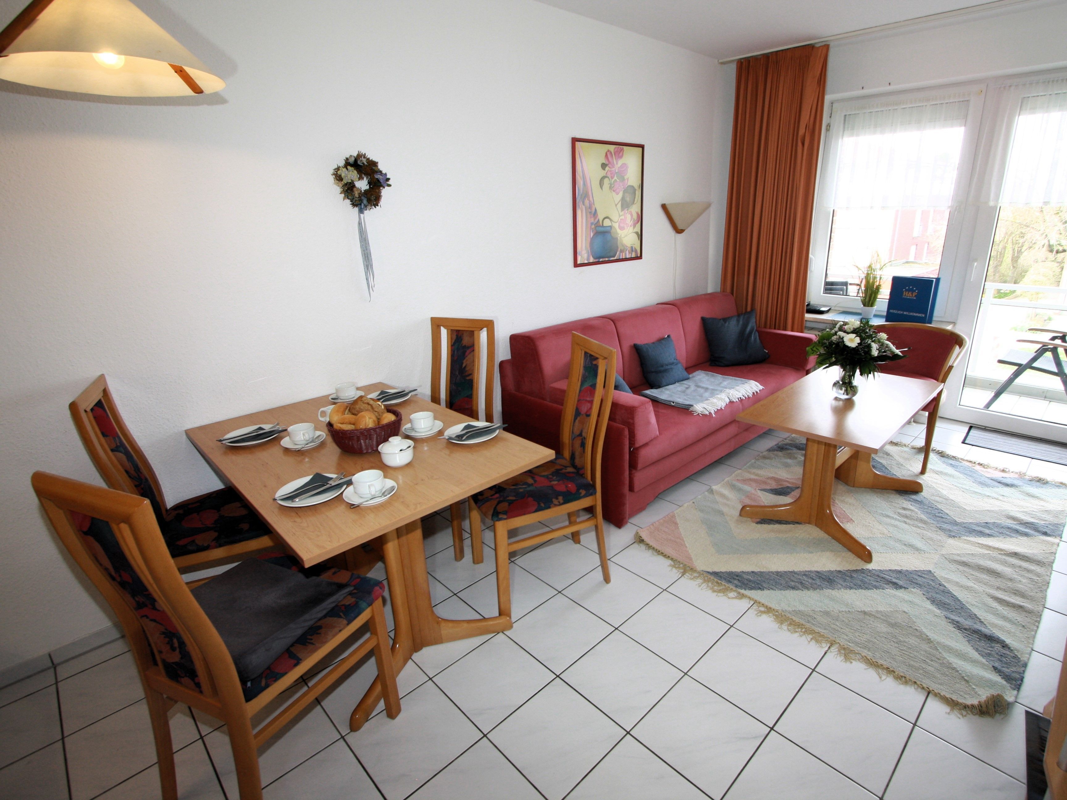 2-Zimmer-Appartement für bis zu 4 Personen auf ca.42 m². Schlafzimmer mit Doppelbett oder zwei Einzelbetten, Wohn-Schlafraum mit Doppelbettcouch, TV, separatem Essplatz, voll ausgestattetem Küchenbereich, Balkon oder Terrasse, Bad mit Dusche/WC. teilweise WLAN und PKW-Stellplatz vorhanden.