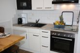 Der Wohnteil ist geschmackvoll mit einem großen Sofa eingerichtet. Telefon (gebührenfreier Telefonanschluss), Radio und LCD-TV (Kabelanschluss) gehören zum Standard. Der Schlafteil mit Doppelbett ist durch eine Wand mit Glasschiebetüren vom Wohnbereich getrennt. Die Küche ist voll ausgestattet. Vom großen Flur mit Gaderobe und Abstellmöglichkeiten geht es links in das vollgeflieste Bad mit Dusche und WC.