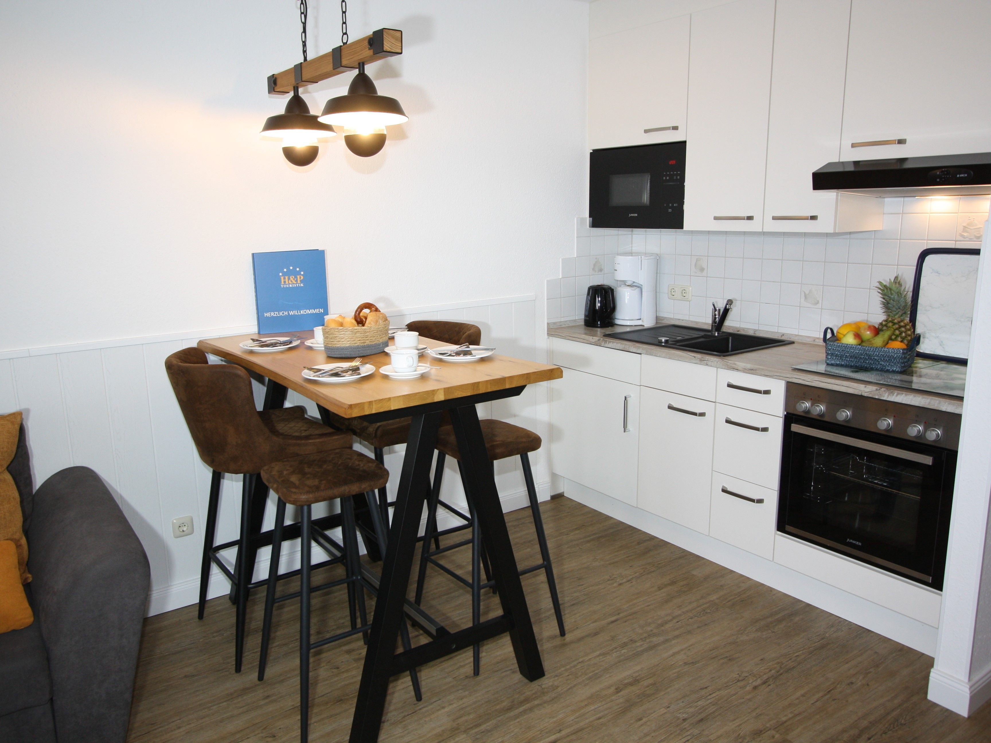 Die 1,5-Zimmerwohnung für bis zu 2 Personen, ist ca. 46 m² groß und verfügt über eine ca. 13 m² große Dachterrasse/Balkon mit herrlichem Blick auf die Nordsee und die Insel Neuwerk.