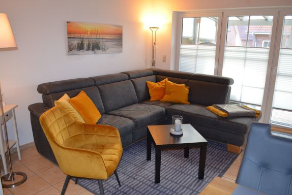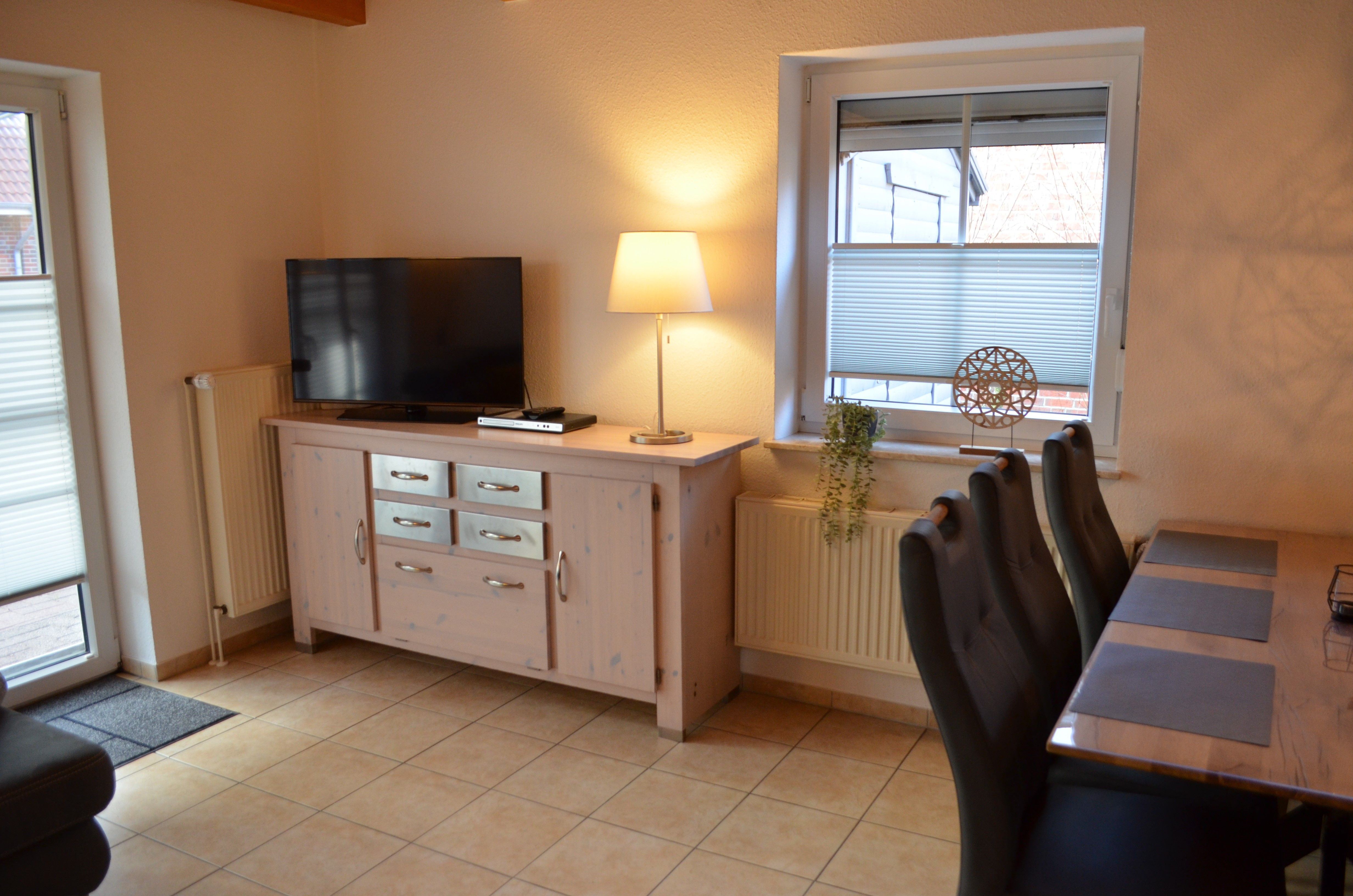 Im stillvoll eingerichteten Wohnbereich haben am Esszimmertisch alle ausreichend Platz. Eine ausziehbare Schlafcouch, sowie zwei weitere Rattansessel und ein bequemer Ohrensessel laden zum Verweilen ein. Ein LCD-Fernseher, DVD-Player; HiFi-Anlage, eine kleine Bibliothek sowie Gesellschafts-Spiele für Klein und Groß runden den Wohnbereich ab.