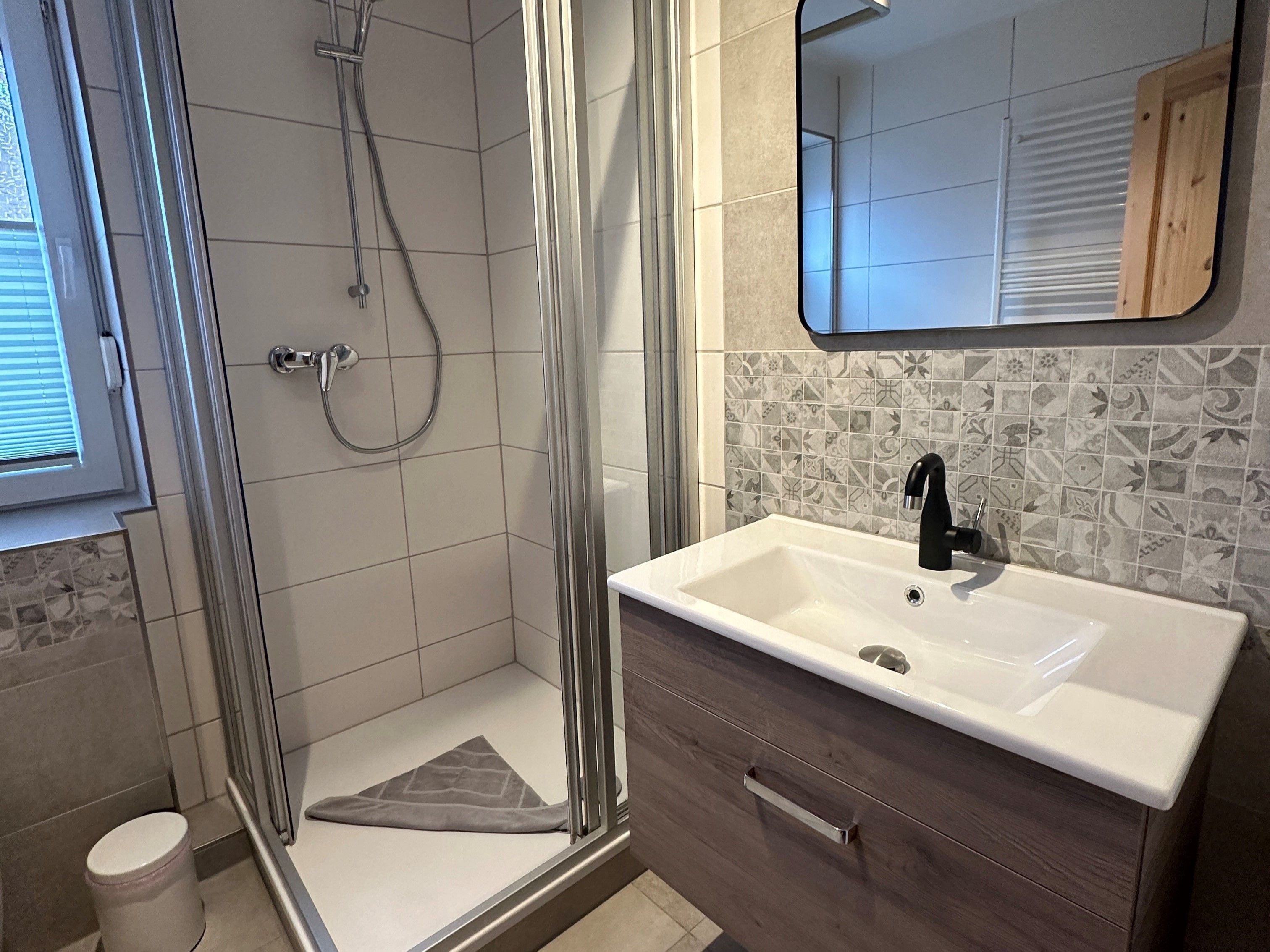 Im Haus 63 finden Sie im EG ein Bad mit WC und eine große Wohnküche die Ihren Wünschen sicherlich entspricht. Ob Geschirrspüler, Mikrowelle, Backofen, Ceranherd, Kühl-/Gefrierkombination, Kaffeemaschine,Tassimo-Kaffeeautomaten, Toaster, Eier-/Wasserkocher, Kindergeschirr und Besteck und vieles mehr, alles ist im Haushalt vorhanden.