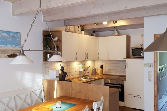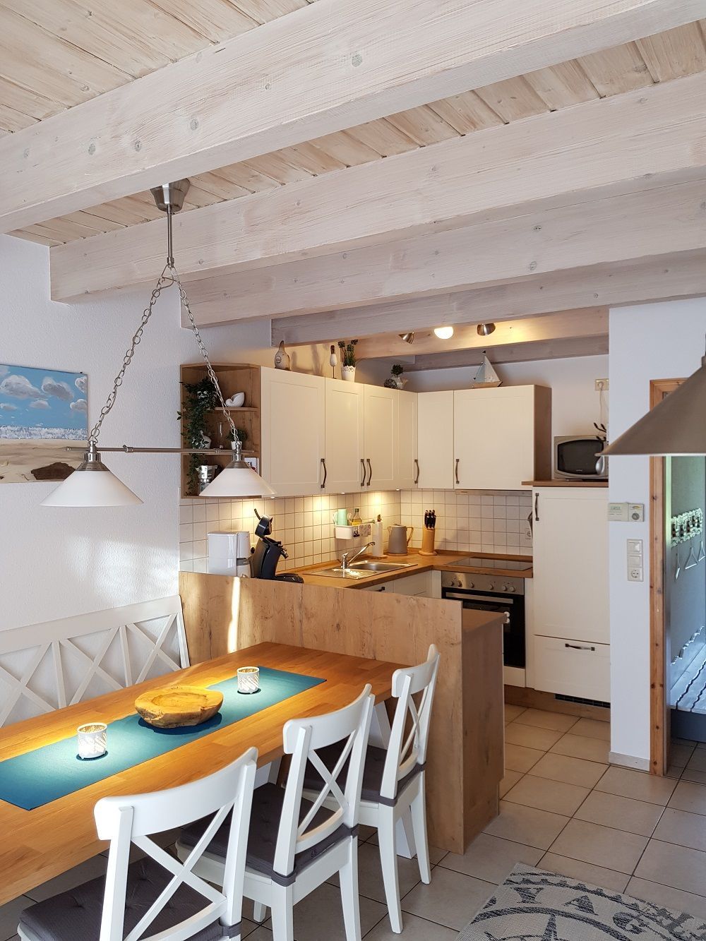 Im Erdgeschoss ist die Küche mit allem ausgestattet, was man alltäglich benötigt wie z.B. Toaster, Kaffeemaschine, Mikrowelle, Wasserkocher, Geschirrspüler, Herd mit Backofen, Geschirr, Kindergeschirr und Flaschenwärmer uvm.