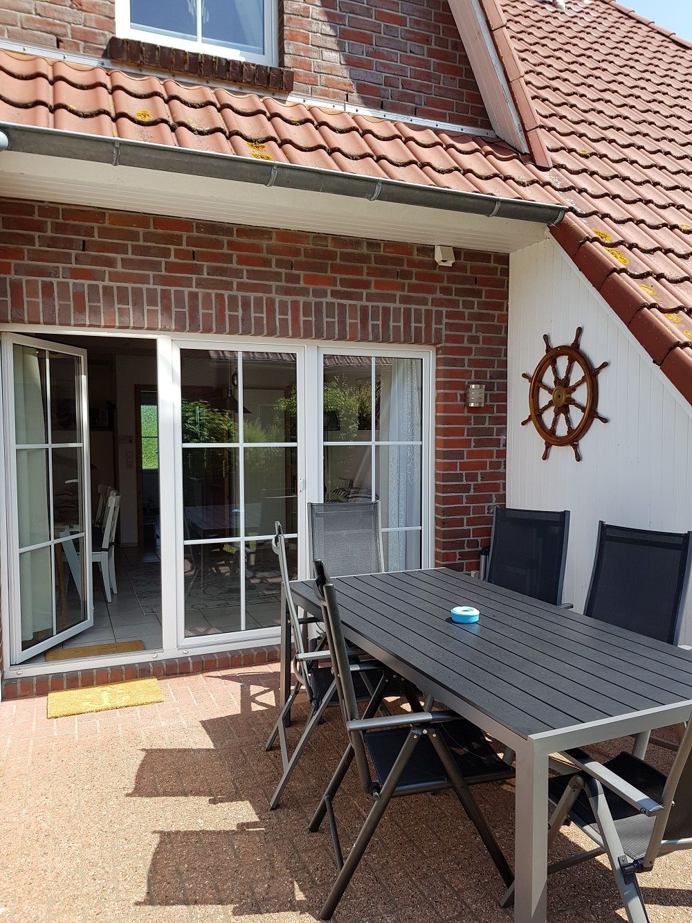 Ebenso das Wohn-/Esszimmer mit u.a. einer bequemen Eckcouch mit Couchtisch, einem großzügigen Esstisch mit ausreichend Bestuhlung plus Hochstuhl, einem Flachbild TV, ein paar Spiele und Bücher uvm. Von dort gelangen Sie auf die ruhige, windgeschützte Terrasse mit großem Tisch und bequemen Stühlen. Im dortigen Geräteraum finden Sie Sitzpolster, einen Holzkohlegrill, Kindertisch und Stühle, Sonnenschirme und einen Wäscheständer.