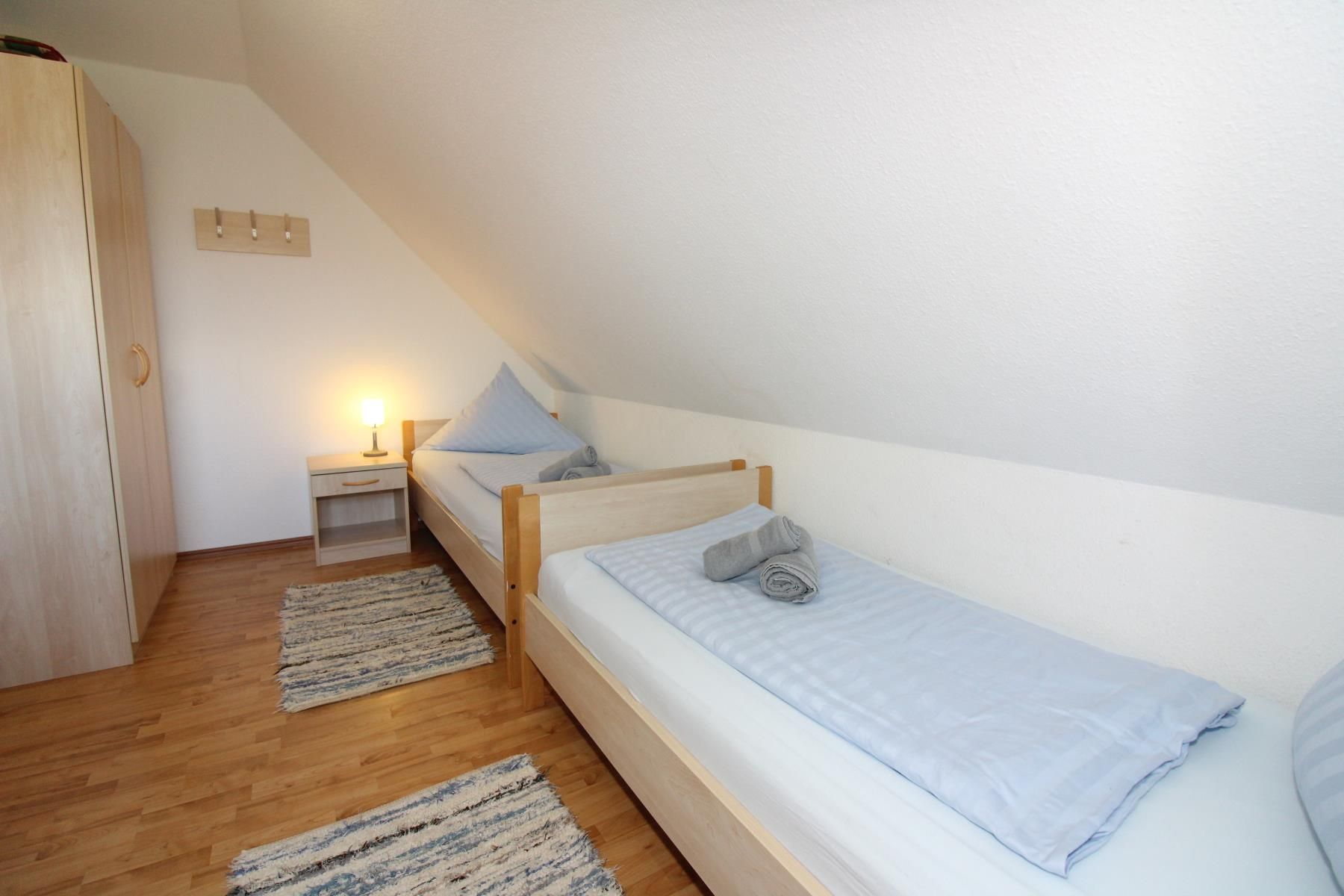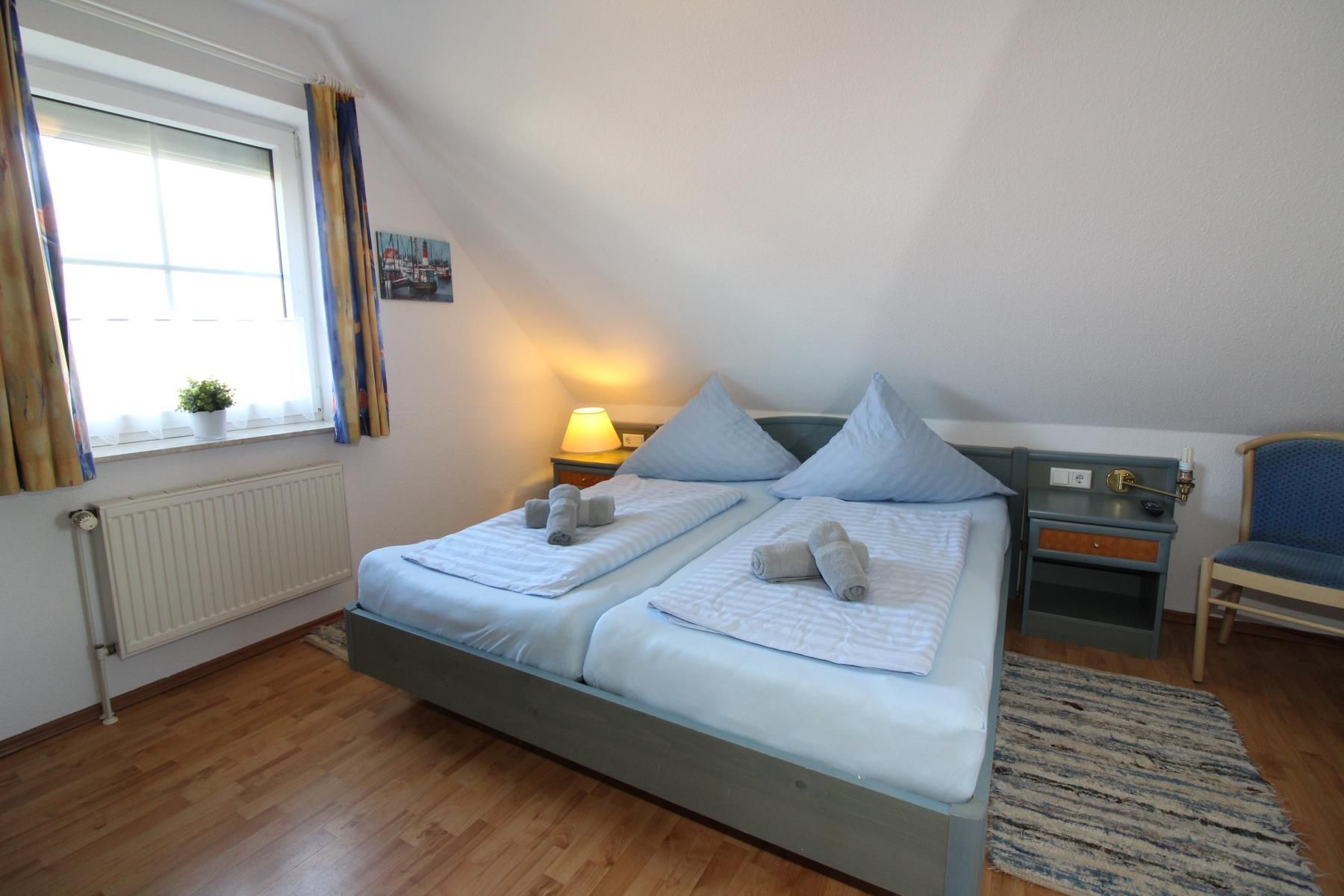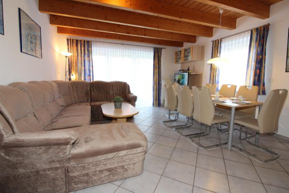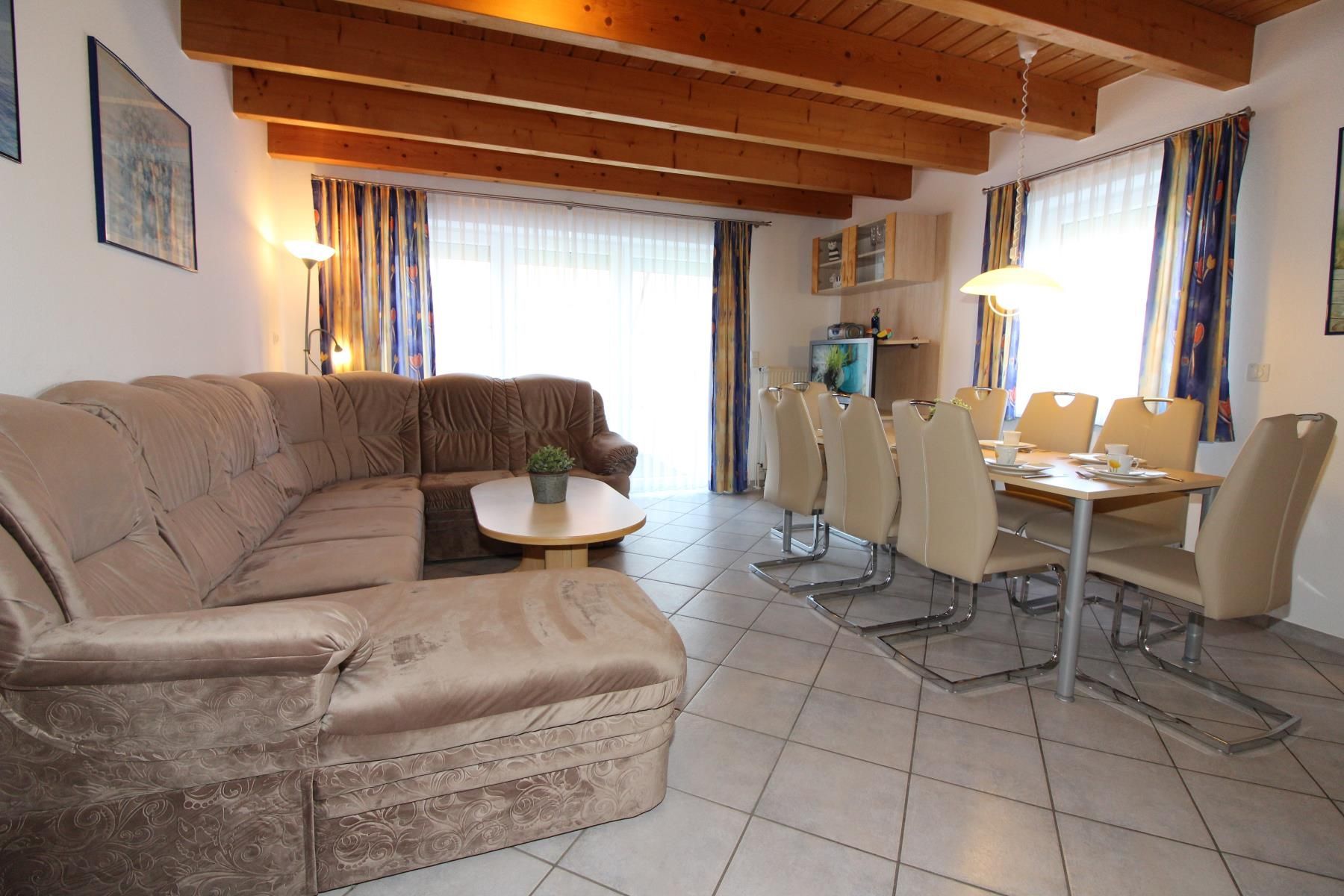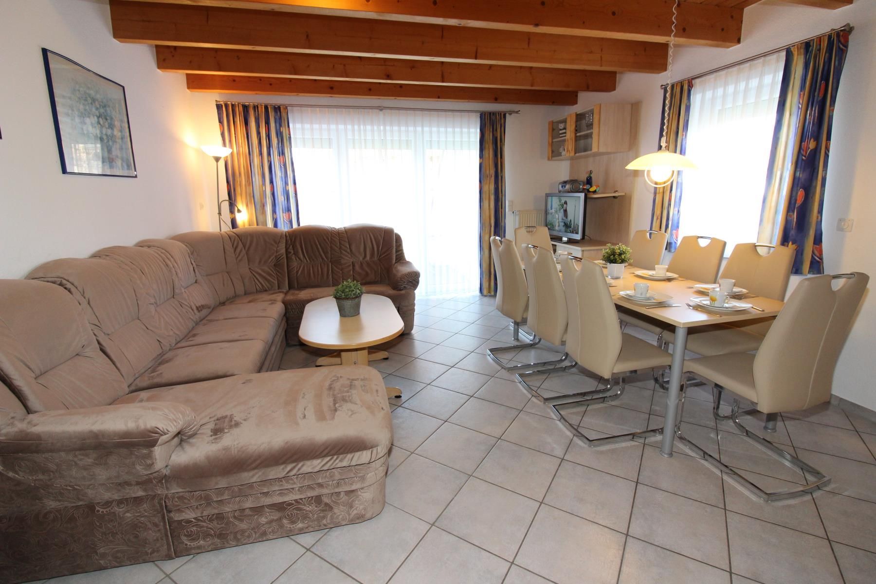 Sie wohnen in einem ruhig gelegenen Eckhaus für bis zu 8 Personen. Das Haus verfügt über eine Wohnfläche von 80 m² und drei Schlafräumen. Ein Schlafraum mit Doppelbett, zwei Schlafräume mit getrennten Betten. Wohn-/Schlafraum mit bequemer Doppelbettcouch, separater Essplatz, Kabel-TV, Stereoanlage, Telefon-ISDN-Anschluss, voll ausgestattete Einbauküche mit Mikrowelle und Geschirrspüler, Dusche/WC im Erd- und Obergeschoss, Terrasse.