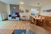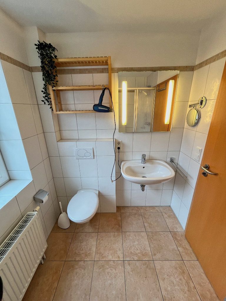 Im Erdgeschoss gibt es den großen Wohn-/Essbereich, eine abgeschlossene Küche und ein Badezimmer mit Dusche.