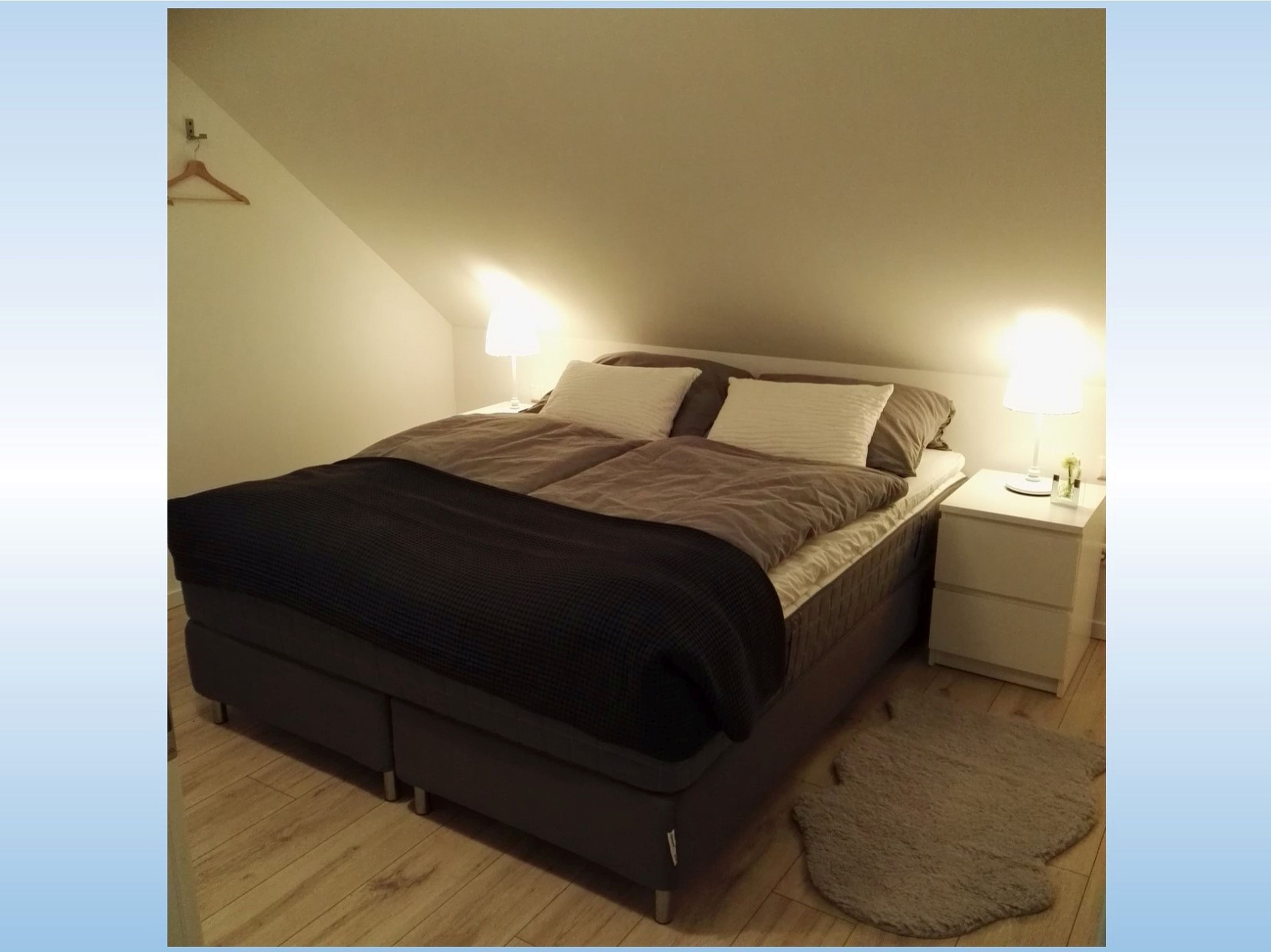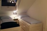 Im Obergeschoss der DHH befindet sich ein weiteres Badezimmer mit Sauna, Badewanne, Dusche und WC. Weiterhin finden Sie hier die 3 Schlafzimmer. Diese verteilen sich wie folgt: ein Schlafzimmer mit Doppelbett und zwei Schlafzimmer mit je 2 Einzelbetten, wovon zwei noch ausziehbar sind.