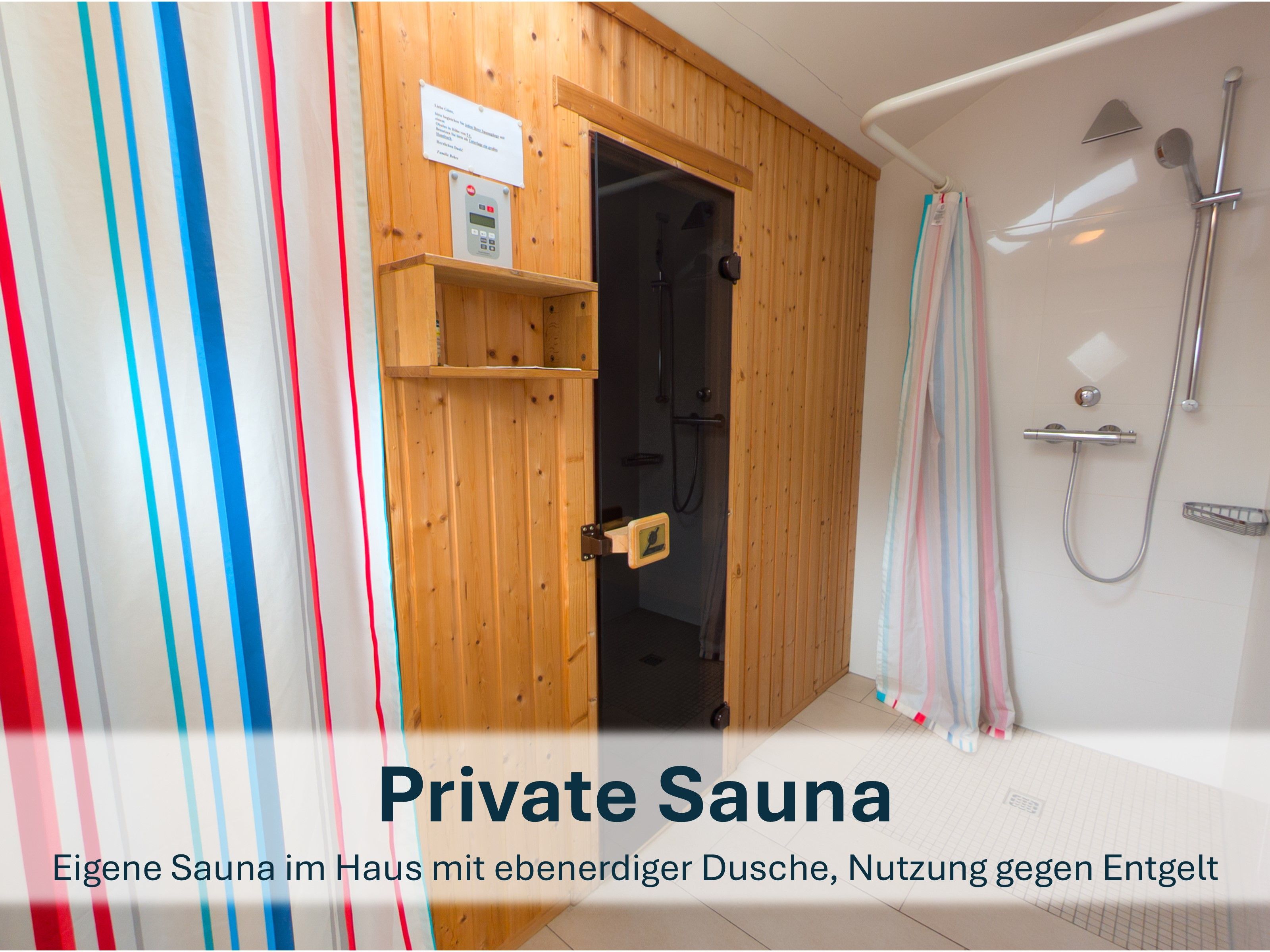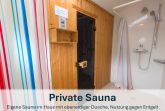 Komplettiert wird der Klipper durch eine Sauna und zusätzlicher Dusche, Sonnenterrasse und Parkplatz am Haus.
