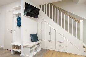 Die frisch renovierte Wohnung Kamphoog 14 befindet sich im ersten Obergeschoss eines Appartementhauses in der Kurhausstraße, unweit der legendären Sturmhaube. Vom Hausflur aus erreichen Sie das gemütliche Wohnzimmer mit der offenen Küche samt Essplatz am Bistrotisch. Ein Multifunktionsbackofen und auch ein Waschtrockner gehören hier zu den Vorzügen. Außerdem ist auf dieser Etage das elegant-moderne Duschbad untergebracht. Wer sich gern mal zu weit aus dem Fenster lehnt, kann hier seitlich sogar einen Blick auf beide Meere erhaschen. Im lichtdurchfluteten Obergeschoss erwartet Sie das behagliche Doppelschlafzimmer. Das Quartier ist mit hochwertigem Eichenparkettboden und Fliesen ausgelegt, farblich dominieren hier weiß und helle Naturtöne. Zu jeder Jahreszeit ein gediegen gemütliches Refugium für Zwei.