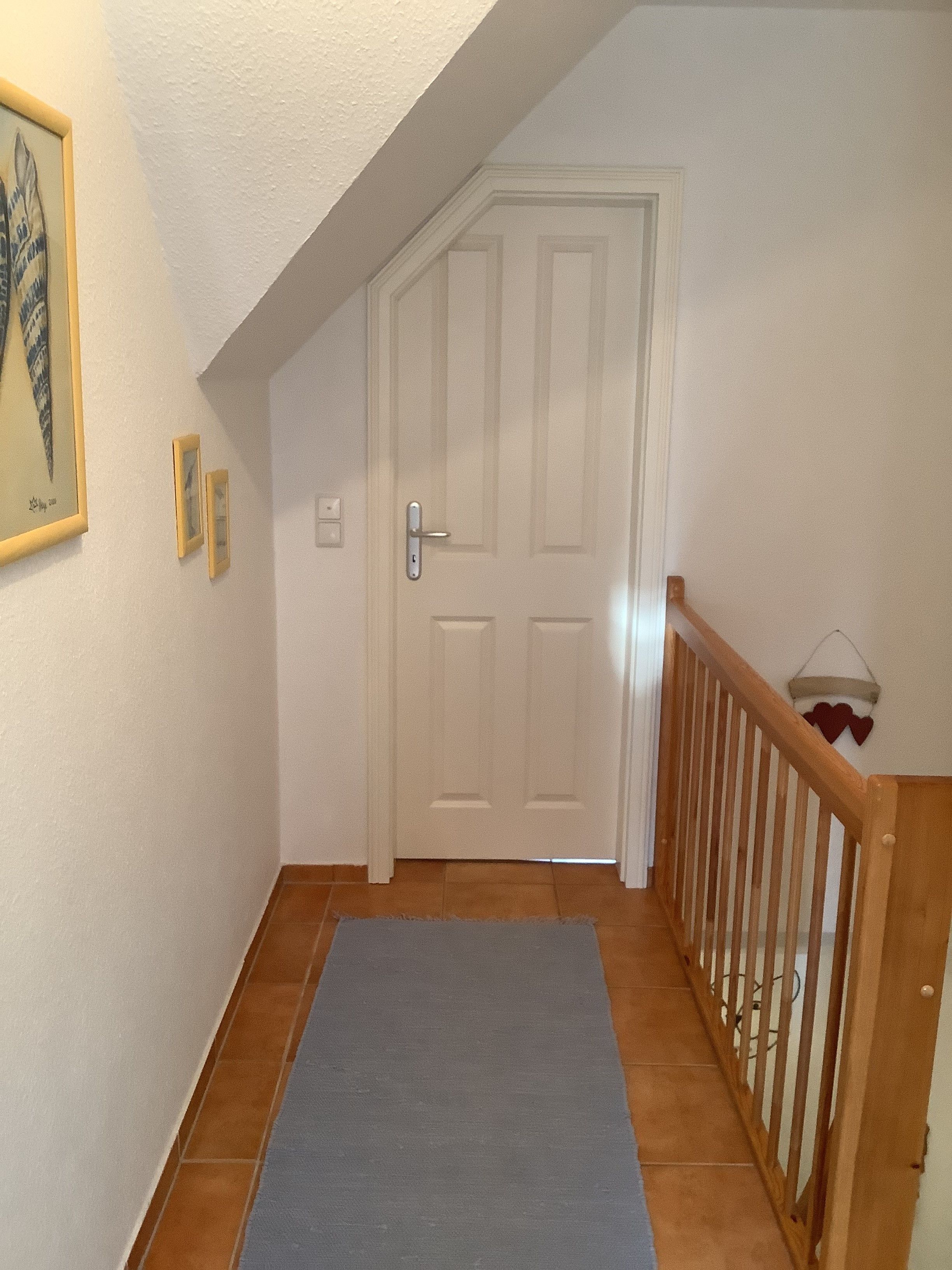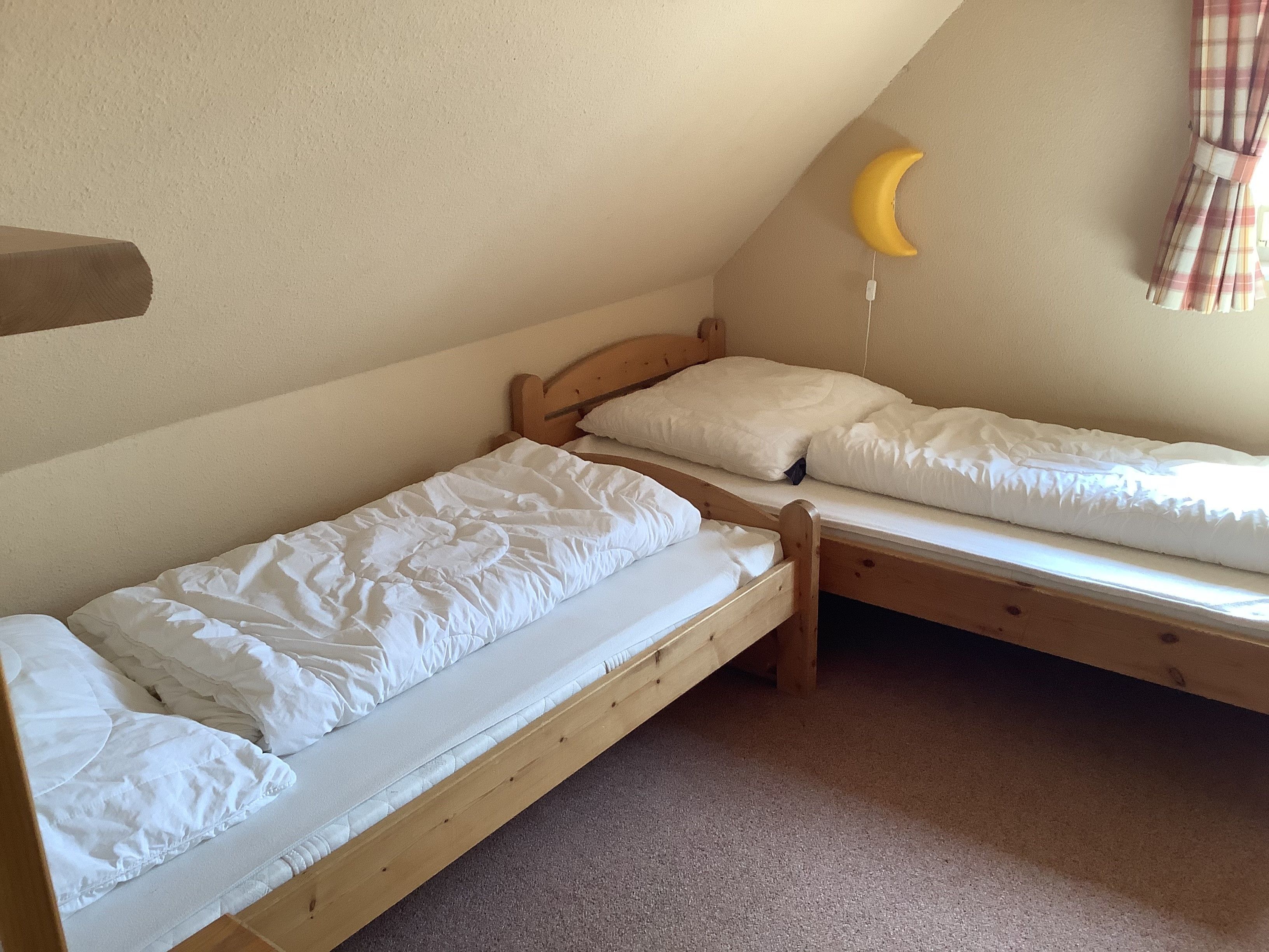 Die obere Etage umfasst nebst einem weiteren Duschbad die drei Schlafzimmer (Doppelbett, zwei Einzelbetten, ein Einzelbett).