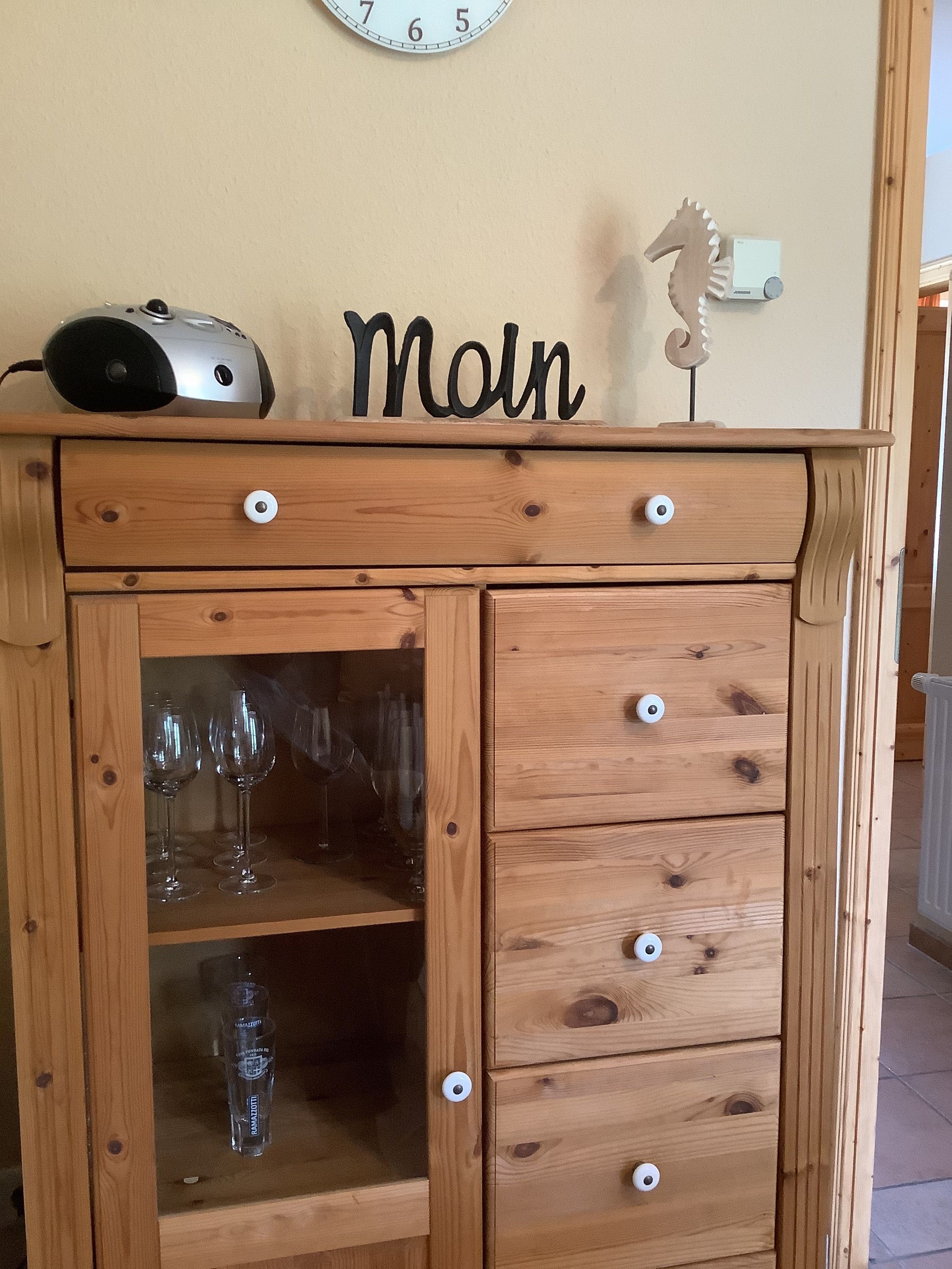 Hinweis: Die Fotos bilden die Ausstattung der Hauskategorie Kogge ab (Ausnahme: Kamin). Die Optik des Mobiliars weicht in den einzelnen Objekten vom Modell (Nr. 44b) ab.