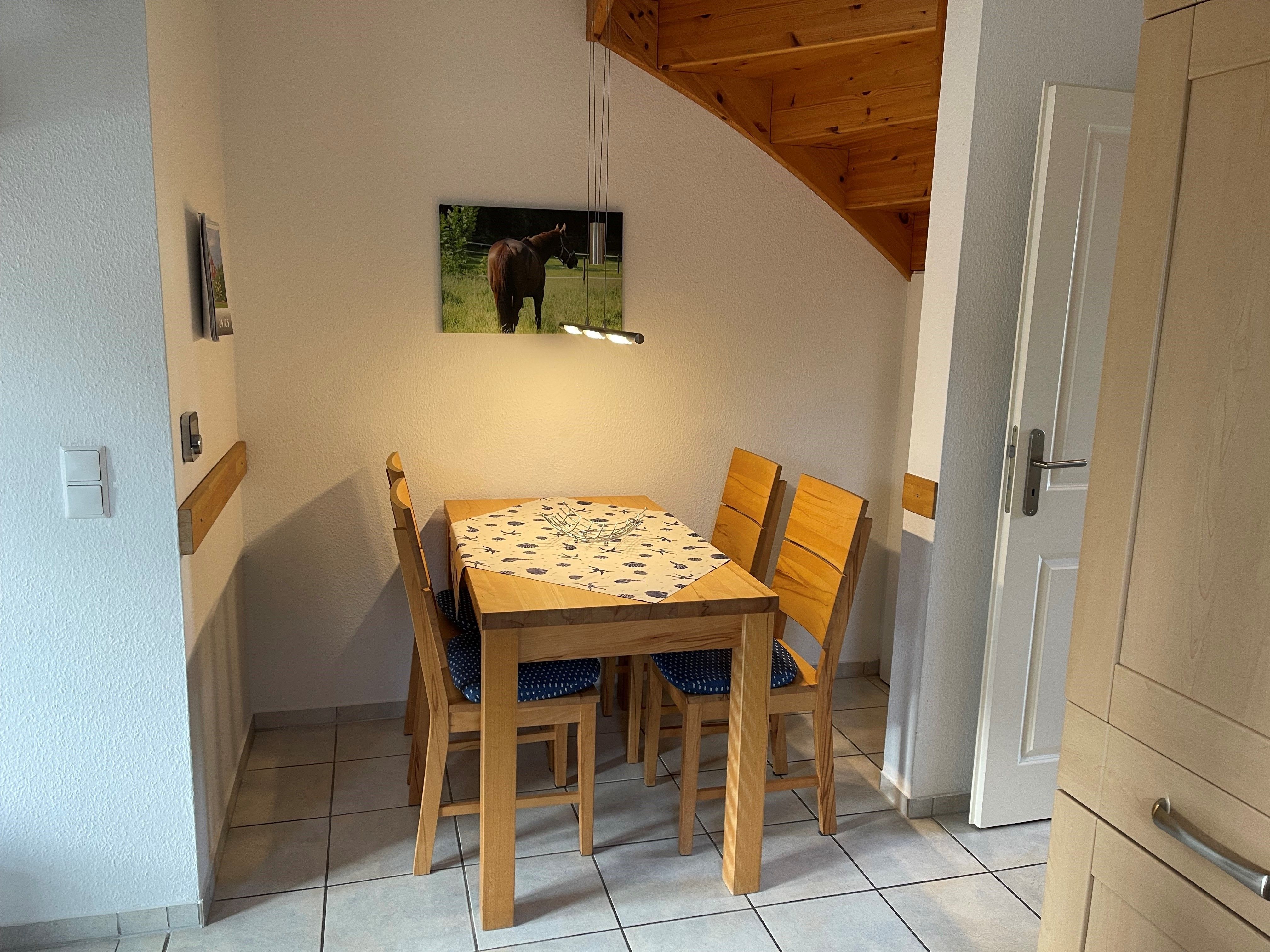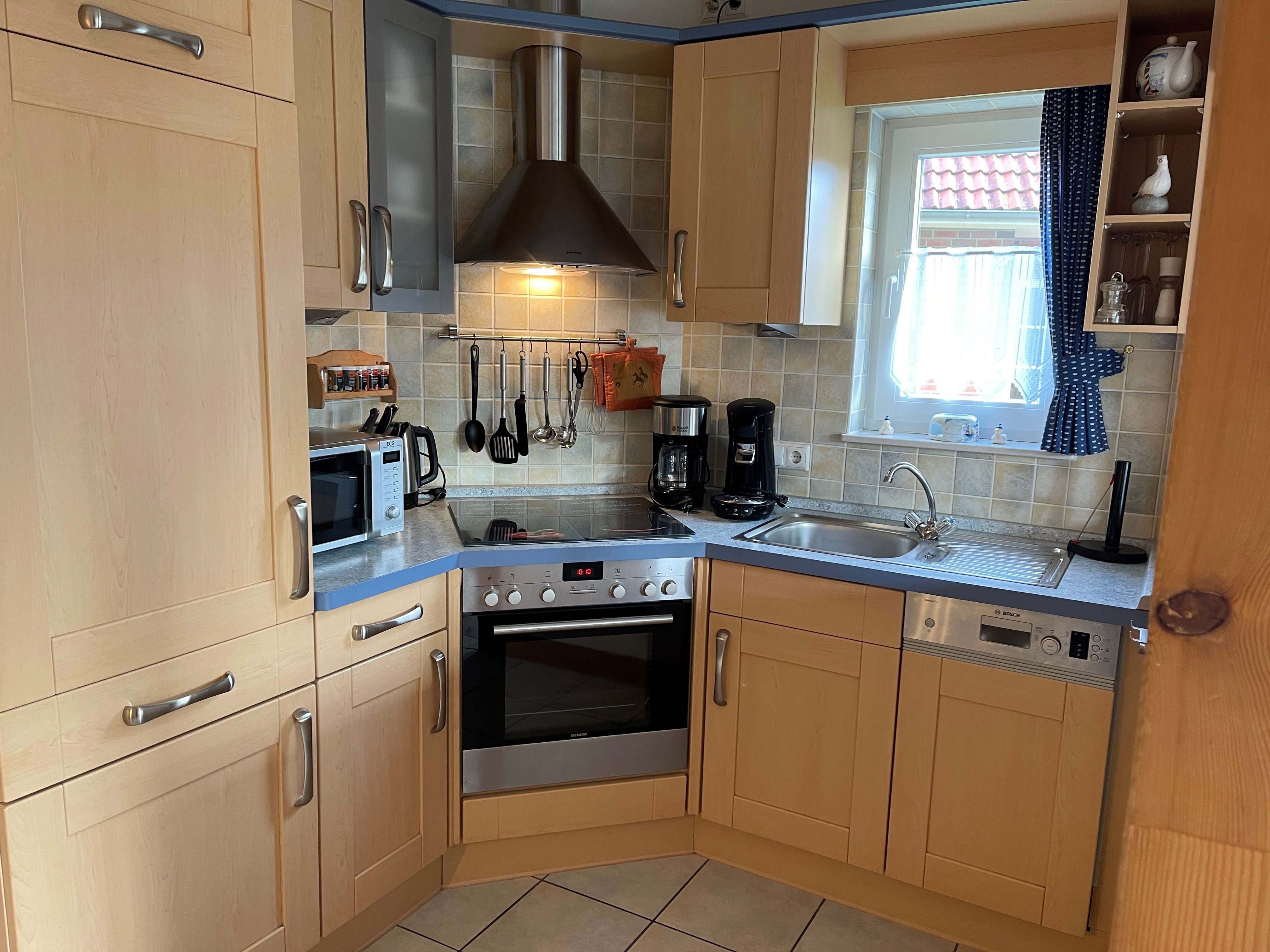 Anschließend an das Wohnzimmer befindet sich eine komplett eingerichtete Küche. Auch erwartet Sie hier eine Terrasse. Genießen Sie beim Frühstücken oder Relaxen die Sonnenstrahlen und die frische Nordseeluft! Aber auch außerhalb der Hautsaison ist das Haus ein idealer Ausgangspunkt für Ihre Erkundungen an der Nordseeküste.