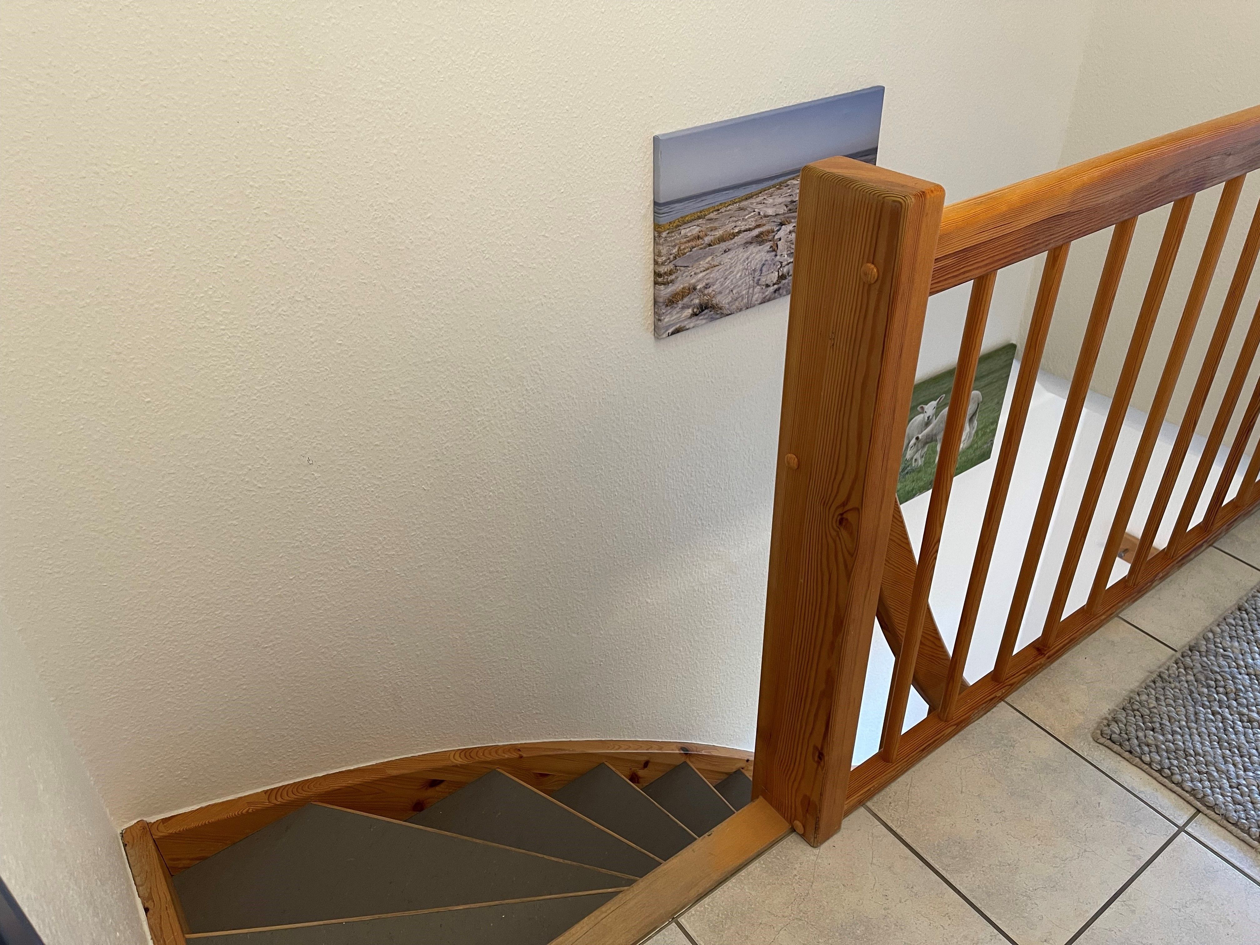 Das Obergeschoss der Doppelhaushälfte erreichen Sie über eine Holztreppe. Hier befindet sich ein Schlafzimmer mit Doppelbett und ein weiteres Schlafzimmer mit einem oder zwei Einzelbetten. Ein zweites Badezimmer mit Dusche und WC finden sie ebenfalls hier.