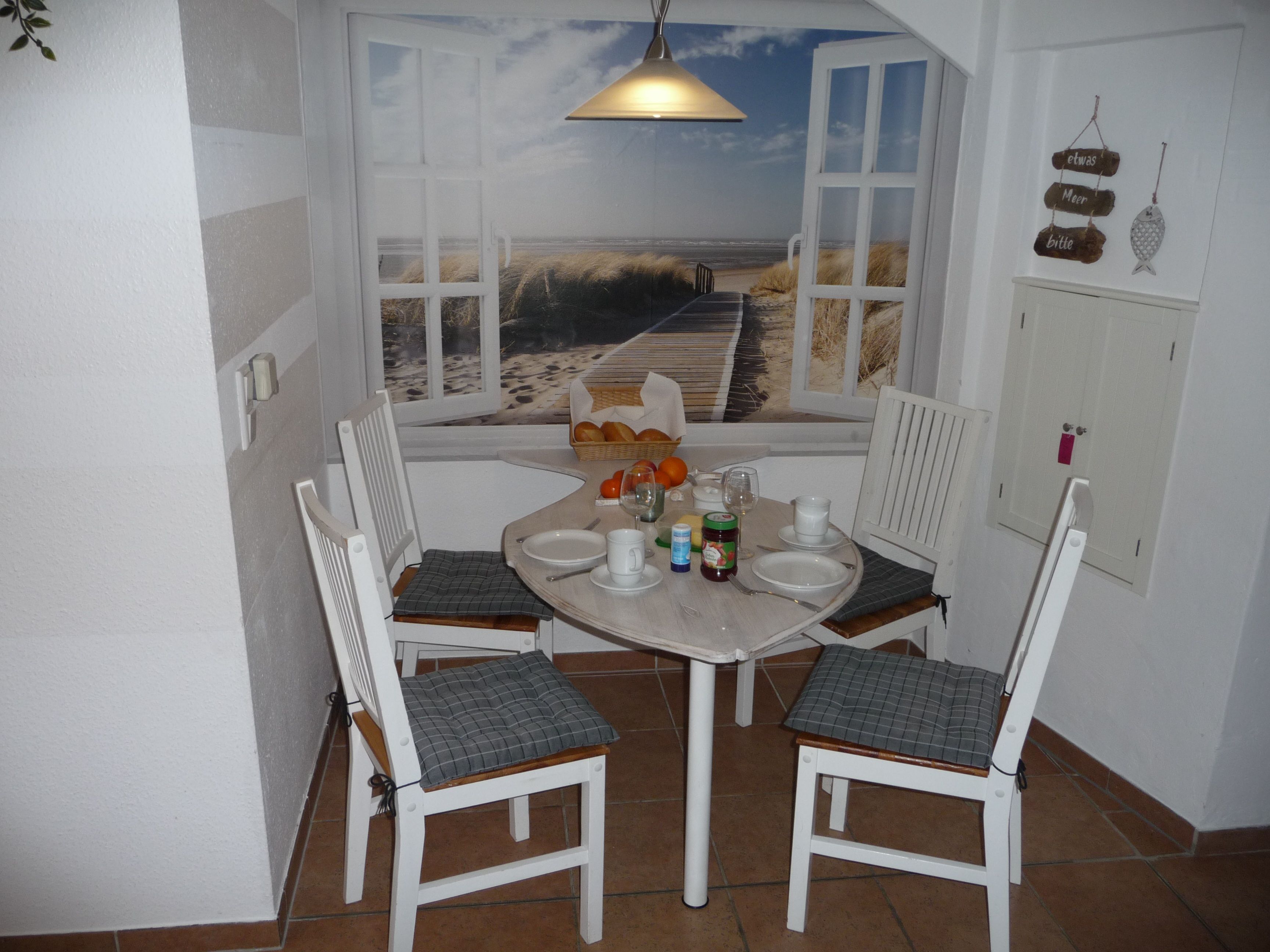 Anschließend an das Wohnzimmer befindet sich eine komplett eingerichtete Küche. Auch erwartet Sie hier eine Terrasse. Genießen Sie beim Frühstücken oder Relaxen die Sonnenstrahlen und die frische Nordseeluft! Aber auch außerhalb der Hautsaison ist das Haus ein idealer Ausgangspunkt für Ihre Erkundungen an der Nordseeküste.