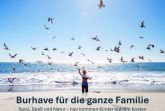 Für Kinder und Erwachsene bieten sich eine Vielzahl von Freizeitmöglichkeiten in Burhave wie auch in der weiteren Umgebung. Baden Sie im Erlebnisbad Nordseelagune Badevergnügen im Meereswassersee ohne Ebbe und Flut oder an den von der DLG überwachten Stränden ohne Eintrittsgebühr entlang der Küste, nutzen Sie Schwimmbad oder Sauna oder die Spielscheune u.a. mit Kartbahn und Minigolf im Ort. Erkunden Sie mit dem Fahrrad die Region, Sie finden ein sehr gut ausgebautes Netz an Radwanderwegen mit bis zu 250 km Länge vor. Ferner können Sie bei uns ausgiebig Segeln, Surfen, Schwimmen, Reiten, Skaten, Nordic-Walking, Wattwandern wie auch Angeln. Ein Ort für Aktivurlaub oder aber auch für Entspannung pur. Unsere Ferienwohnungen stellen hierfür den idealen Ausgangspunkt dar. Zentral gelegen, unweit vom Strand aber dennoch ruhig und individuell.