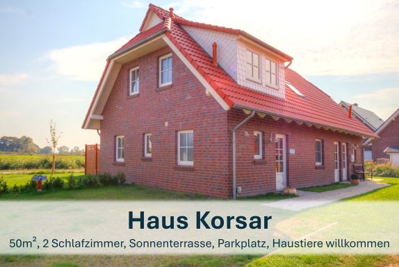 Das Ferienhaus befindet sich kurz hinter dem Deich. Komfortabel und geschmackvoll eingerichtet auf ca. 50 qm und ausgelegt für max. 3 (Korsar II) oder 4 (Korsar I) Personen (ggf. zzgl. einem Kleinkind) finden Sie alles vor, was einen unbeschwerten Urlaub verspricht.