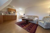 Die Fewo 2 ist ausgestattet für zwei Personen mit einem Schlafzimmer (1,8 x 2 m) und einem großzügigen Wohn/Esszimmer, sowie einer Küchenzeile und Duschbad. Die Wohnung liegt im zwar im 1. Stock, dennoch ist eine Terrasse samt Standkorb im Garten vorhanden.