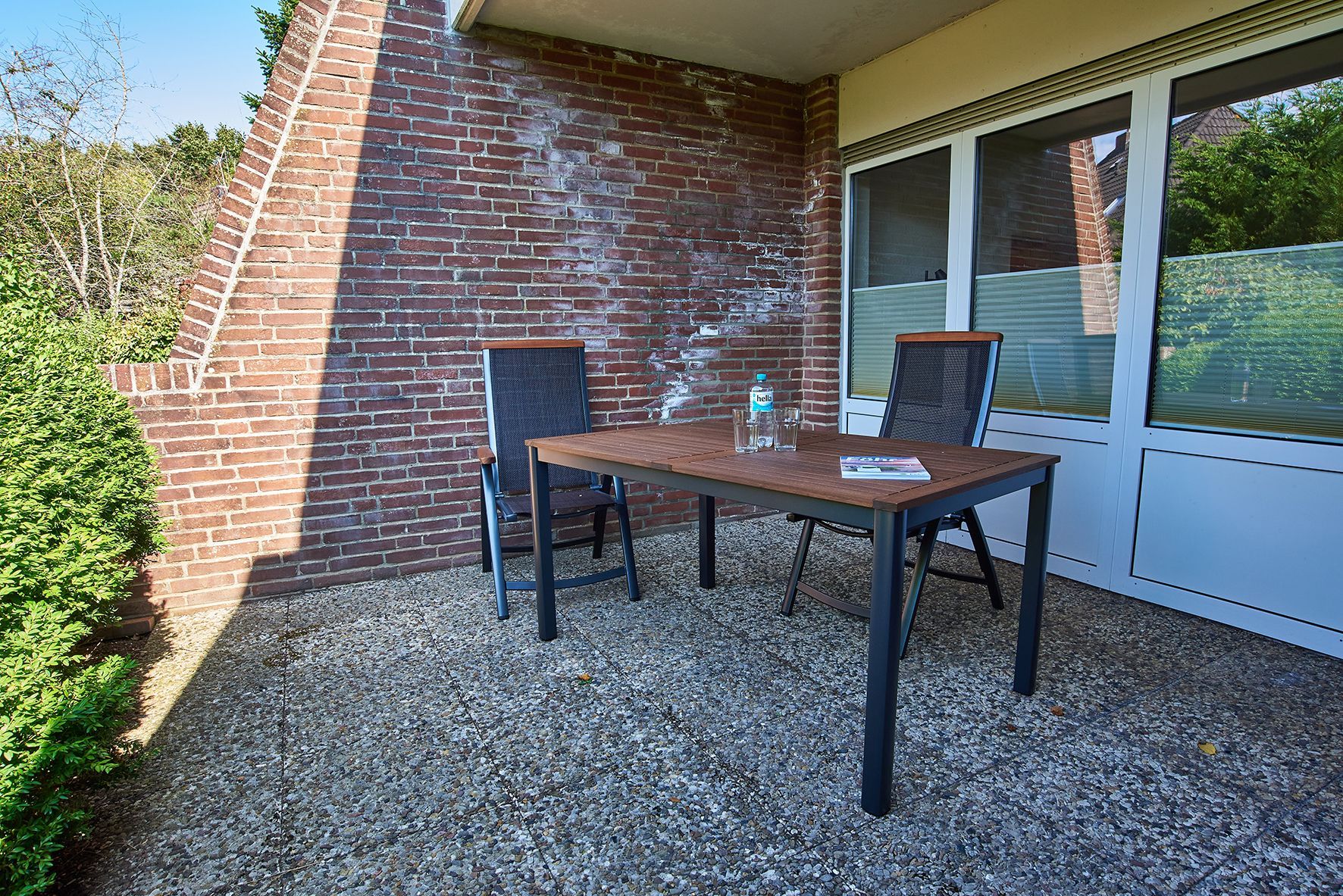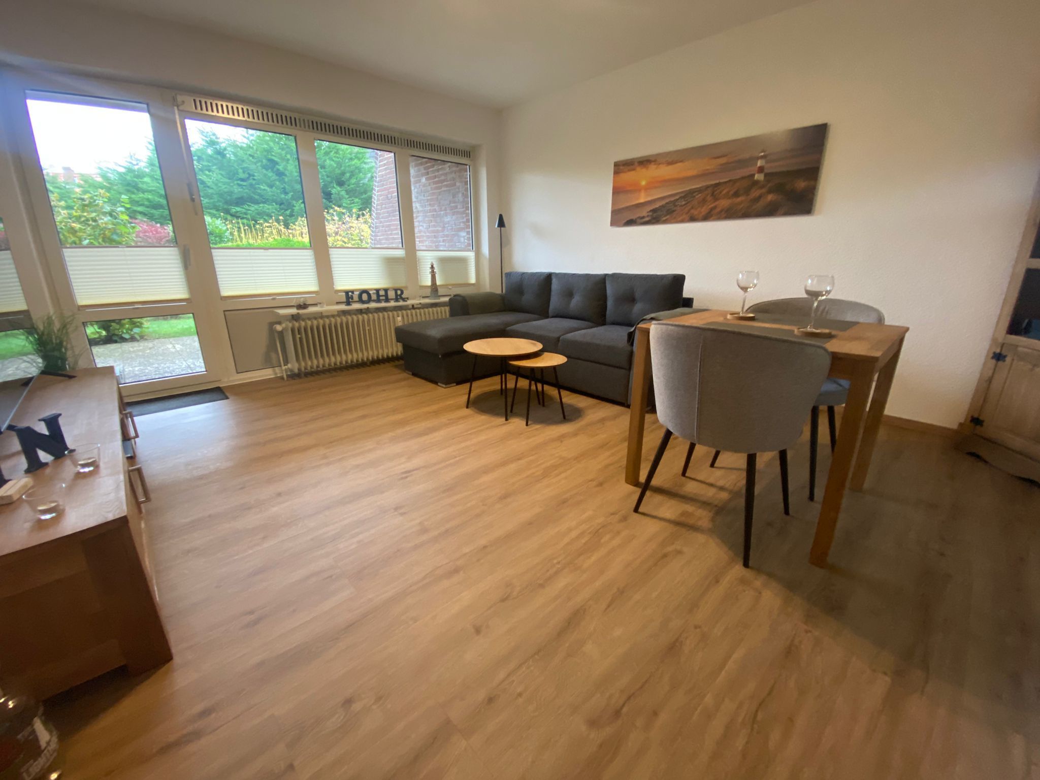 Modern eingerichtete und 2022 renovierte Wohnung im Erdgeschoss mit großer, überdachter Terrasse. Nähe Friesenmuseum und Edeka. Zum Zentrum, Strand, Wellenbad und Kurmittelhaus sind es nur ca. 10 Gehmin.