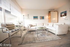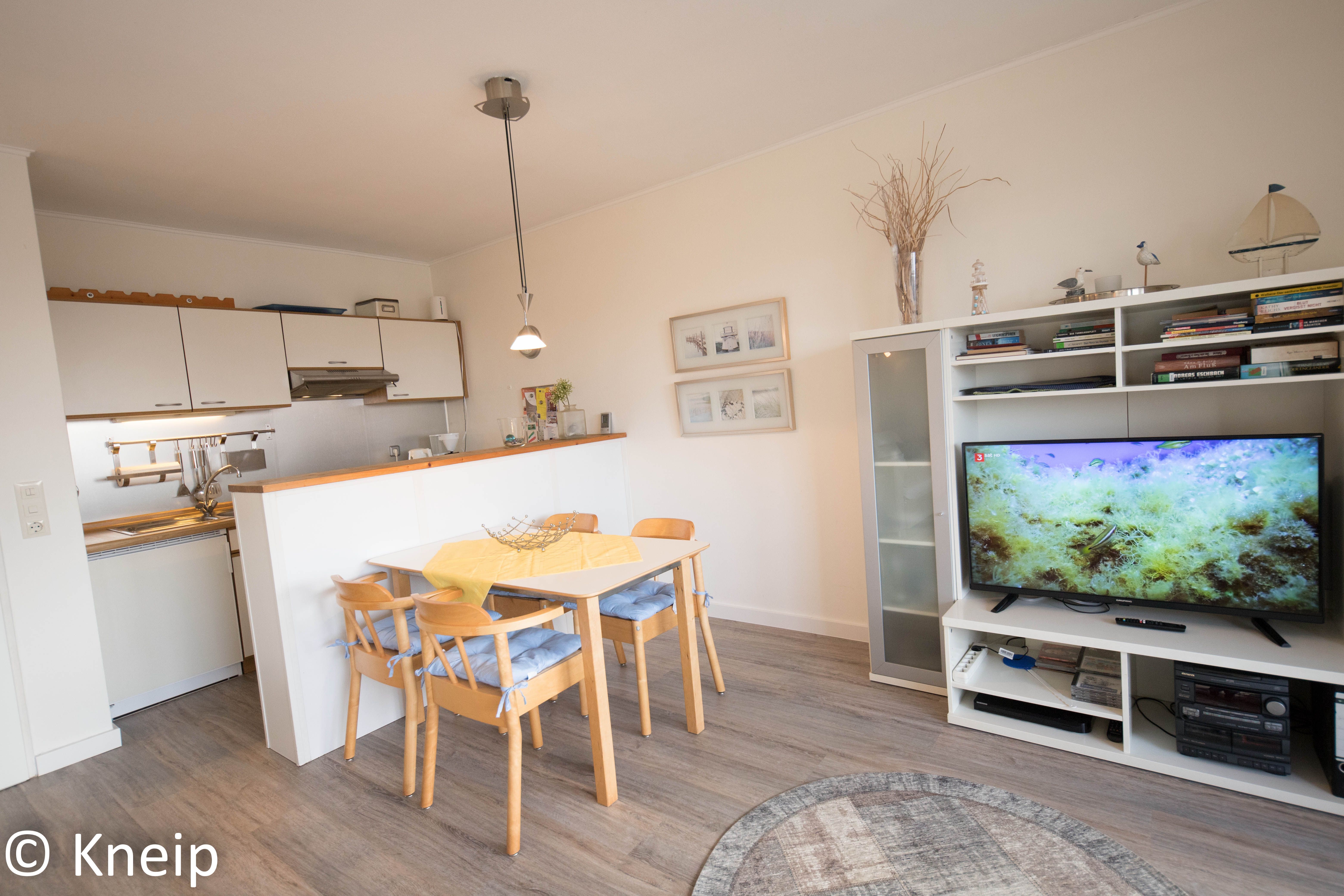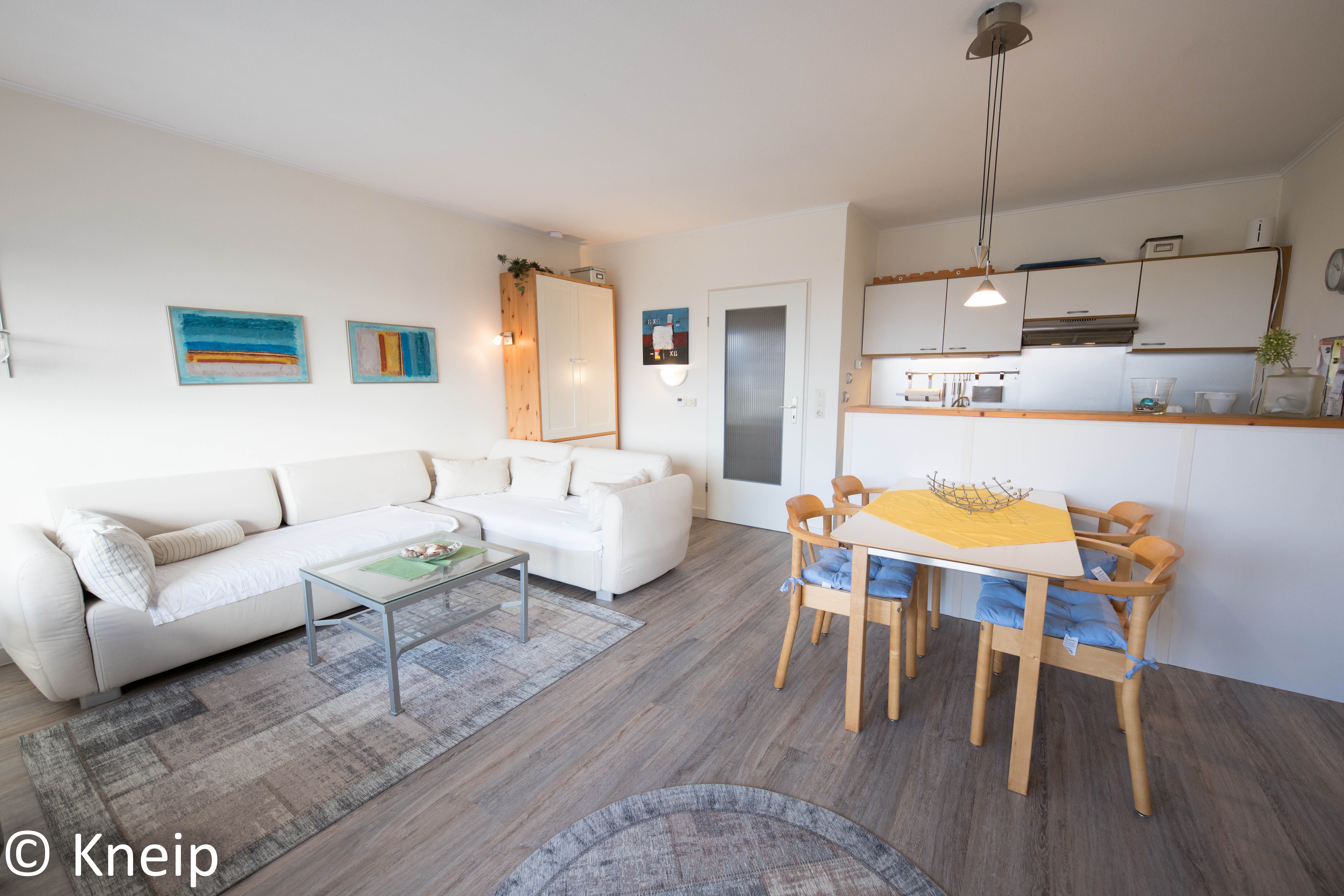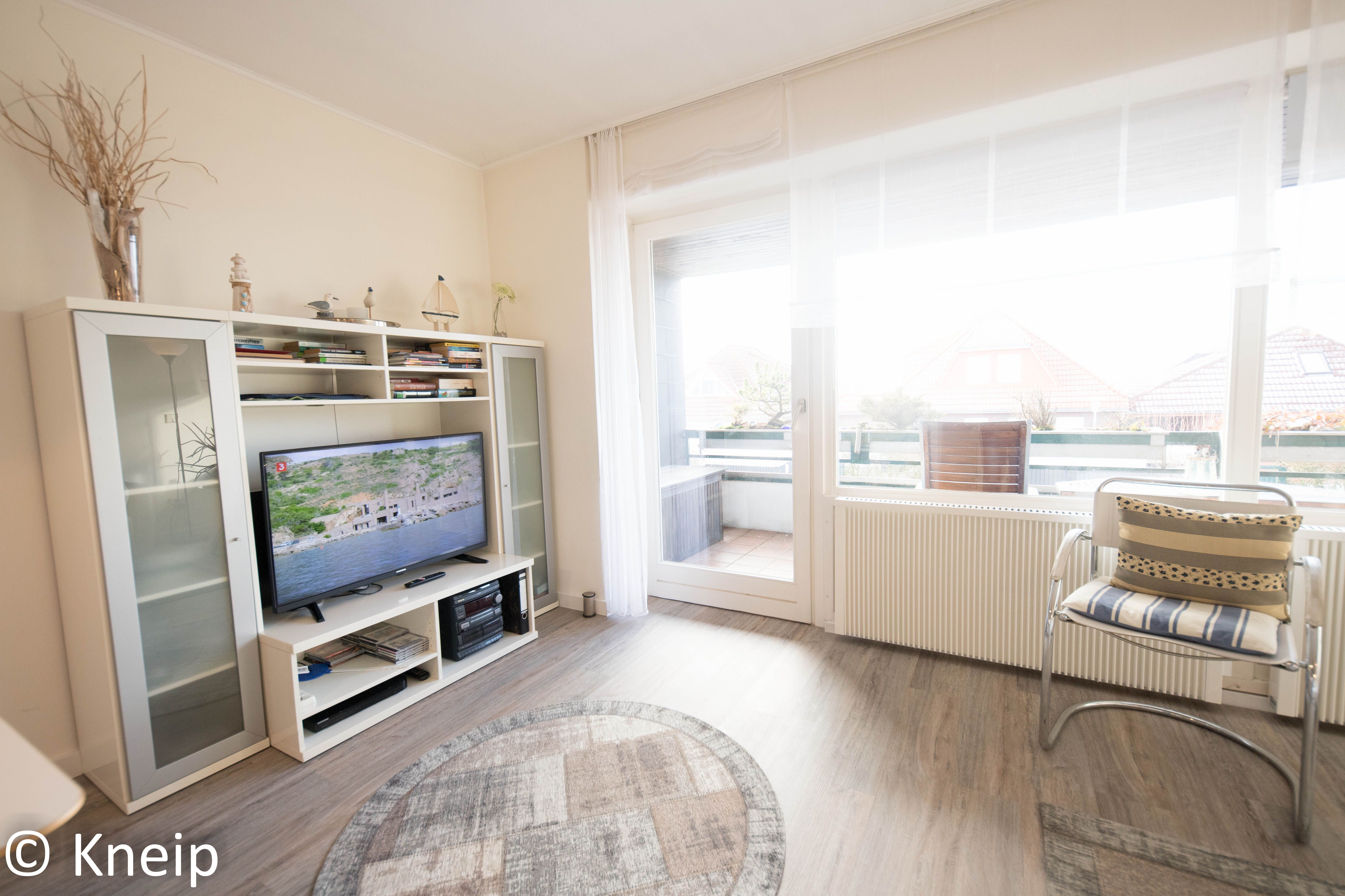 Die liebevoll eingerichtete Ferienwohnung Meggy liegt nur wenige Gehminuten vom weitläufigen Sandstrand in Schillig entfernt. Auch die kleine Fußgängerzone mit Bäcker, Souveniergeschäften und Restaurants sind schnell zu erreichen. Das Objekt verfügt über ca. 50m² und befindet sich im ersten Obergeschoss eines Reihenhauses. Ein separater Eingang ist vorhanden. Das Wohnzimmer ist hell und freundlich gestaltet, es lädt zum gemütlichen Verweilen ein. Ein Sat-TV (43Zoll), sowie Radio und CD-Player sind vorhanden. Auch eine kleine Auswahl an Strandlektüren und Gesellschaftsspielen liegen für Sie bereit. Im Wohnzimmer integriert aber optisch durch einen Tresen getrennt, befindet sich die kleine aber feine Küchenzeile. Sie ist komplett mit Backofen, Geschirrspülmaschine, Kaffeemaschine, Toaster und Wasserkocher sowie einem 4-Platten-Herd und einer Kühl-Gefrierkombination ausgestattet. Der Essbereich schließt sich der Küchenzeile an. Vom Wohnzimmer aus gelangen Sie auf den großen und überdachten Balkon (Süd-West). Hier können Sie auch noch in den Abendstunden Ihr Gläschen Wein bei Sonnenstrahlen genießen. Das helle Badezimmer verfügt über eine Dusche mit niedrigem Einstieg, Waschbecken und WC. Ein Fön ist vorhanden. Das maritime Schlafzimmer lädt zum Träumen ein. Das Bett hat eine Breite von 1,80m x 2,00m (zwei Matratzen). Zwei Schränke, eine Kommode, sowie ein Einbauschrank bieten genügend Stauraum. Das Schlafzimmer lässt sich mit Außenrollos verdunkeln. Ein Parkplatz gehört zur Wohnung. Auch Ihre Räder stehen im Fahrradschuppen sicher und trocken. Auf Anfrage darf gerne ein Haustier mitgebracht werden. Nichtraucherwohnung