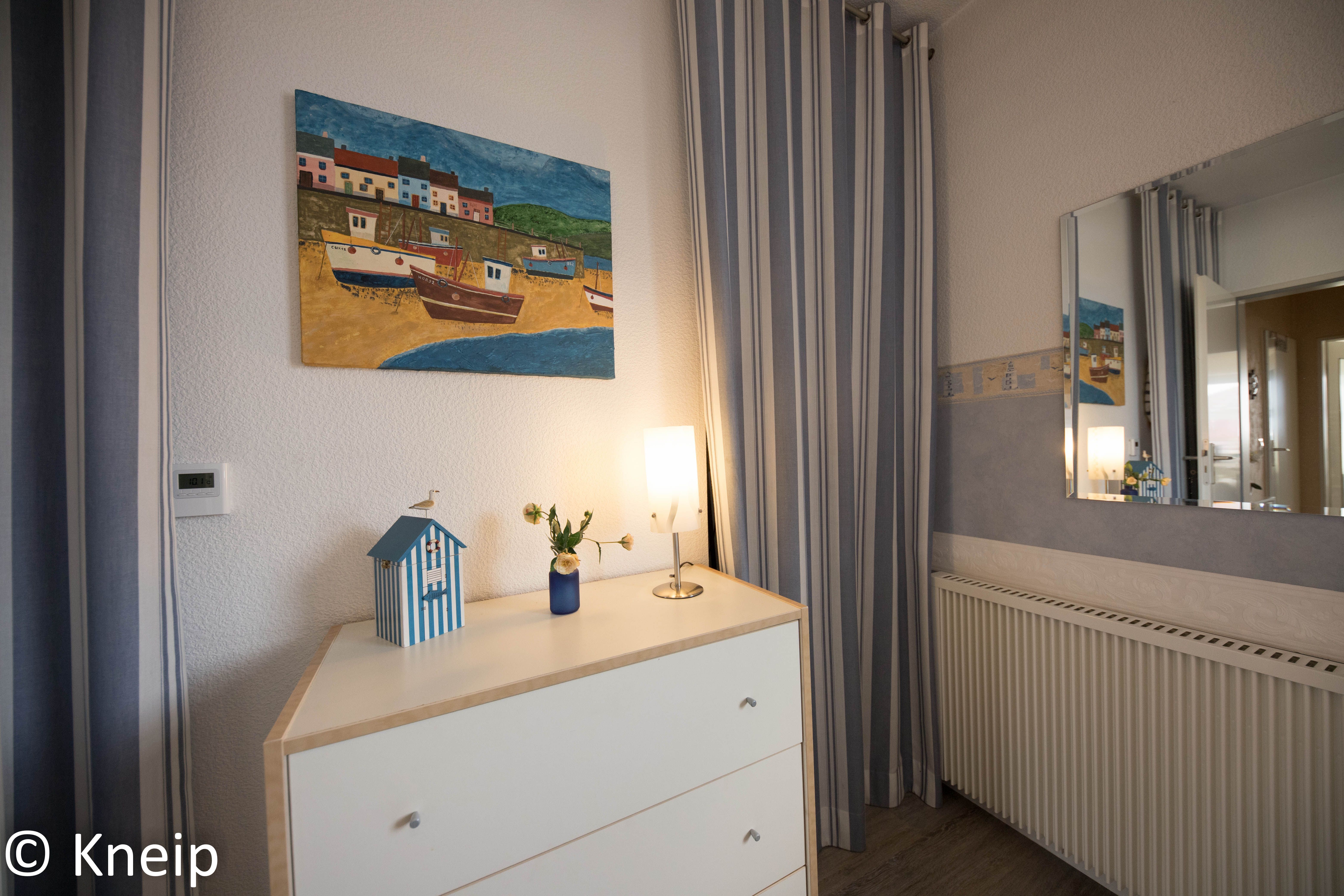 Die liebevoll eingerichtete Ferienwohnung Meggy liegt nur wenige Gehminuten vom weitläufigen Sandstrand in Schillig entfernt. Auch die kleine Fußgängerzone mit Bäcker, Souveniergeschäften und Restaurants sind schnell zu erreichen. Das Objekt verfügt über ca. 50m² und befindet sich im ersten Obergeschoss eines Reihenhauses. Ein separater Eingang ist vorhanden. Das Wohnzimmer ist hell und freundlich gestaltet, es lädt zum gemütlichen Verweilen ein. Ein Sat-TV (43Zoll), sowie Radio und CD-Player sind vorhanden. Auch eine kleine Auswahl an Strandlektüren und Gesellschaftsspielen liegen für Sie bereit. Im Wohnzimmer integriert aber optisch durch einen Tresen getrennt, befindet sich die kleine aber feine Küchenzeile. Sie ist komplett mit Backofen, Geschirrspülmaschine, Kaffeemaschine, Toaster und Wasserkocher sowie einem 4-Platten-Herd und einer Kühl-Gefrierkombination ausgestattet. Der Essbereich schließt sich der Küchenzeile an. Vom Wohnzimmer aus gelangen Sie auf den großen und überdachten Balkon (Süd-West). Hier können Sie auch noch in den Abendstunden Ihr Gläschen Wein bei Sonnenstrahlen genießen. Das helle Badezimmer verfügt über eine Dusche mit niedrigem Einstieg, Waschbecken und WC. Ein Fön ist vorhanden. Das maritime Schlafzimmer lädt zum Träumen ein. Das Bett hat eine Breite von 1,80m x 2,00m (zwei Matratzen). Zwei Schränke, eine Kommode, sowie ein Einbauschrank bieten genügend Stauraum. Das Schlafzimmer lässt sich mit Außenrollos verdunkeln. Ein Parkplatz gehört zur Wohnung. Auch Ihre Räder stehen im Fahrradschuppen sicher und trocken. Auf Anfrage darf gerne ein Haustier mitgebracht werden. Nichtraucherwohnung -