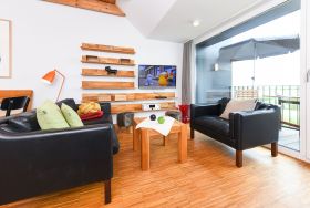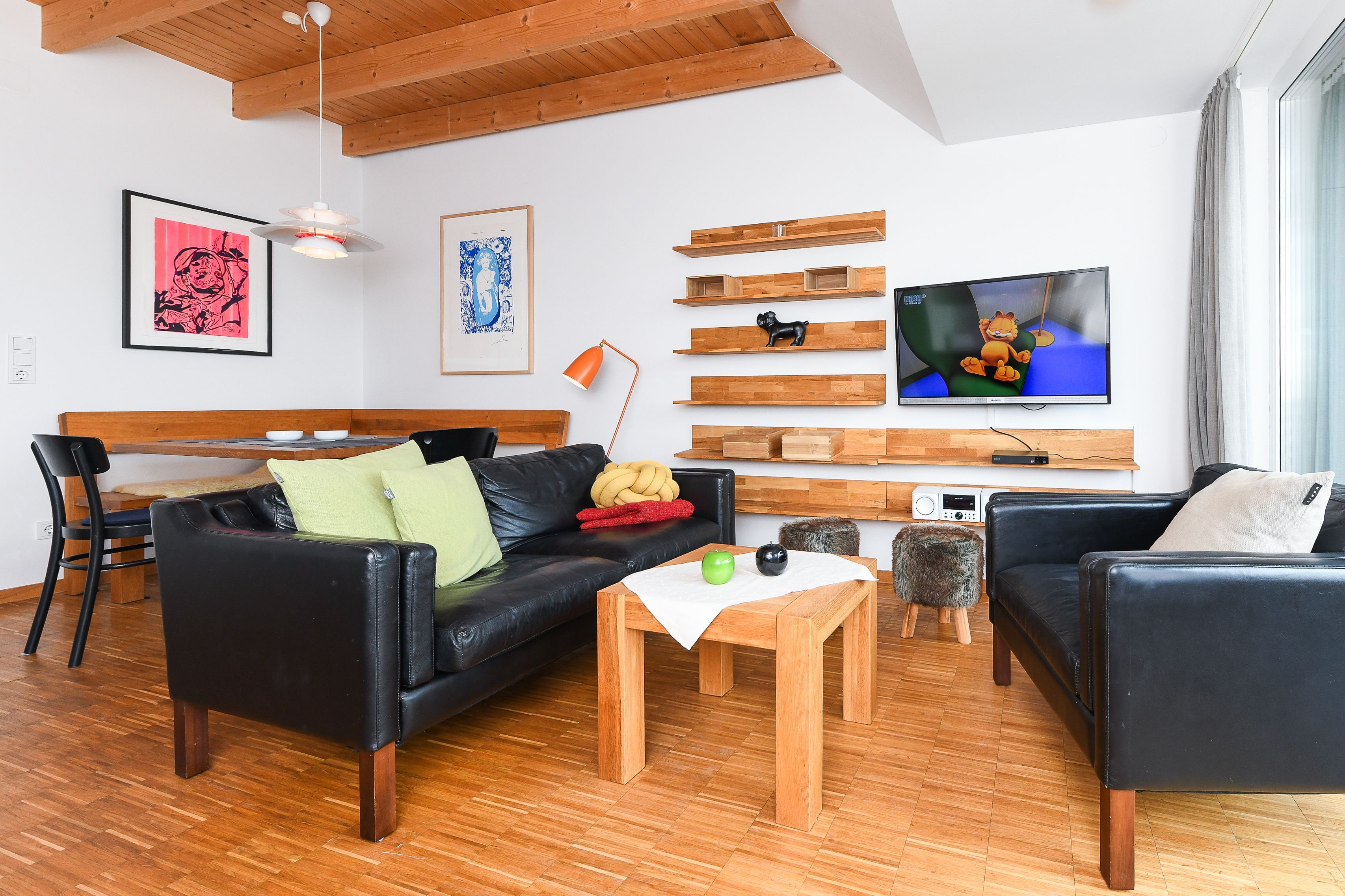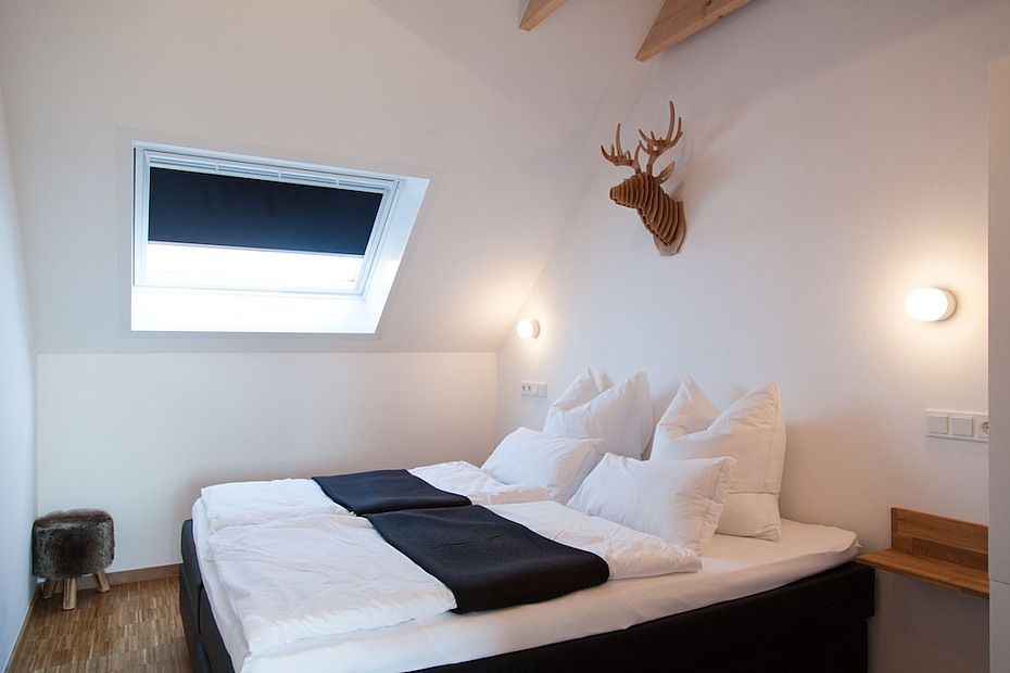 Komfortable Boxspringbetten sorgen für einen angenehmen und wohltuenden Schlaf. In dem Appartement gibt es WLAN, es finden sich ein großer TV-Flachbildschirm, ein DVD-Player und eine kleine Stereo-Anlage.